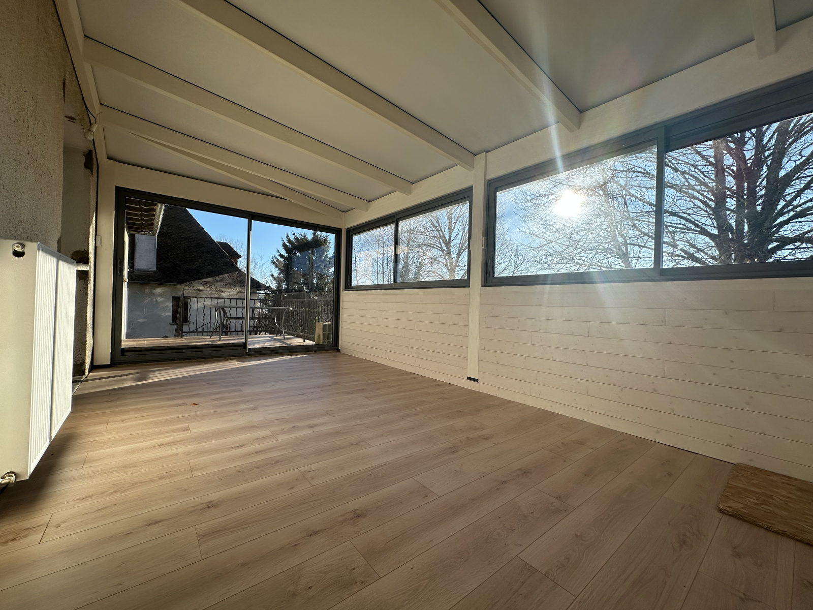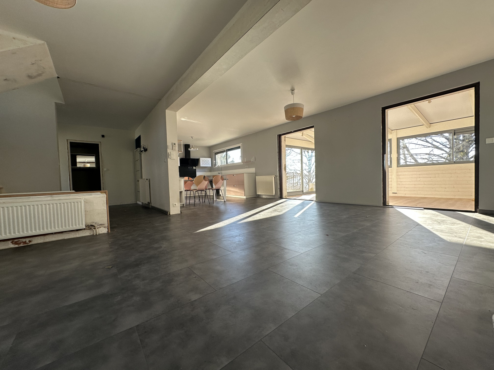 Composée de plain-pied d'une grande et lumineuse pièce de vie avec une cuisine ouverte (neuve), d'une véranda exposée sud avec un accès direct au jardin, d'une buanderie et d'un WC. Une chambre et une salle d'eau supplémentaire sont prévue sur ce niveau (travaux à terminer).