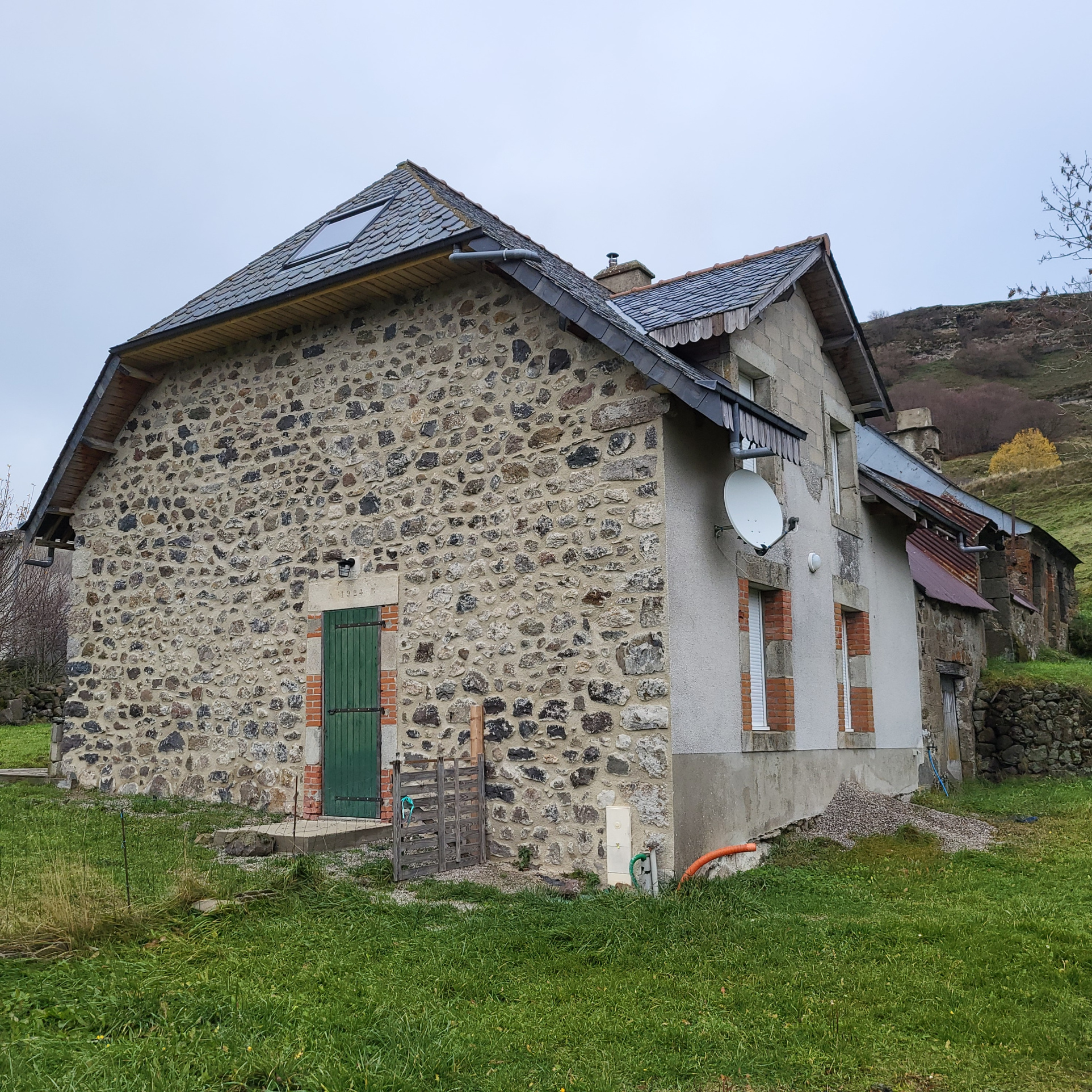 Troisiéme partie du bâtiment une maison en pierre avec cantou ,entiérement à renover.