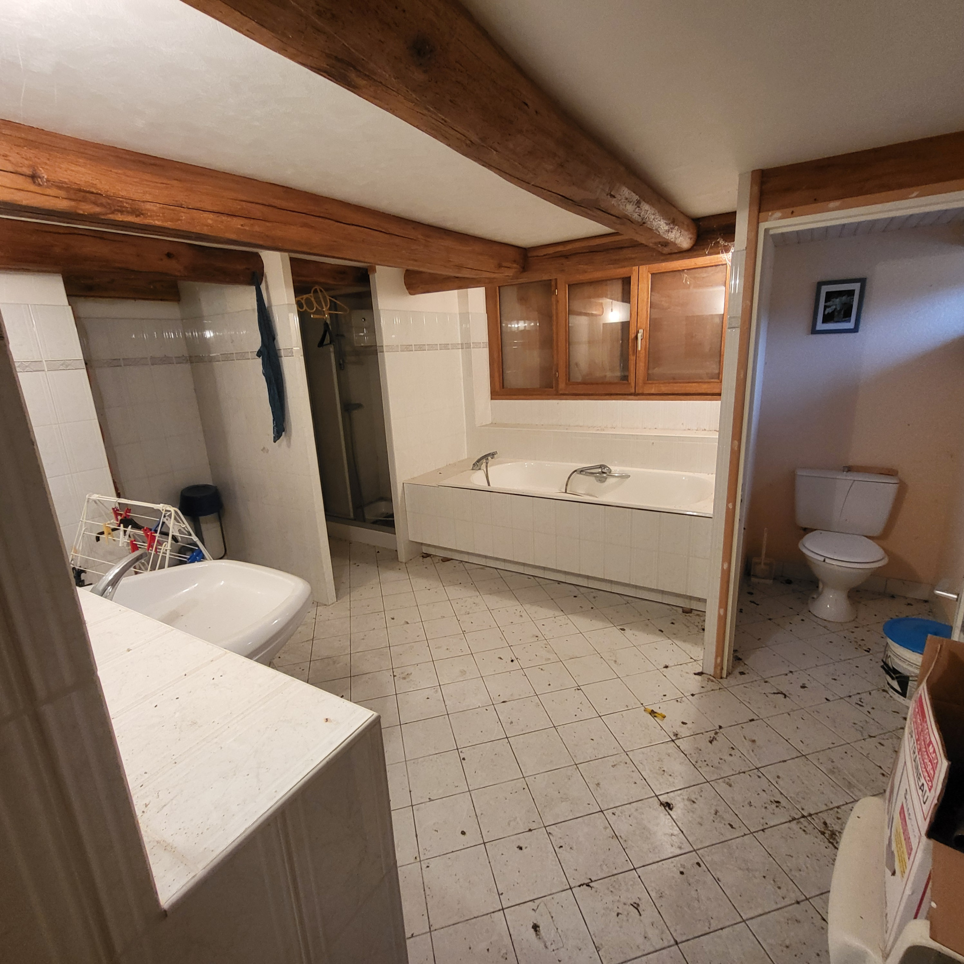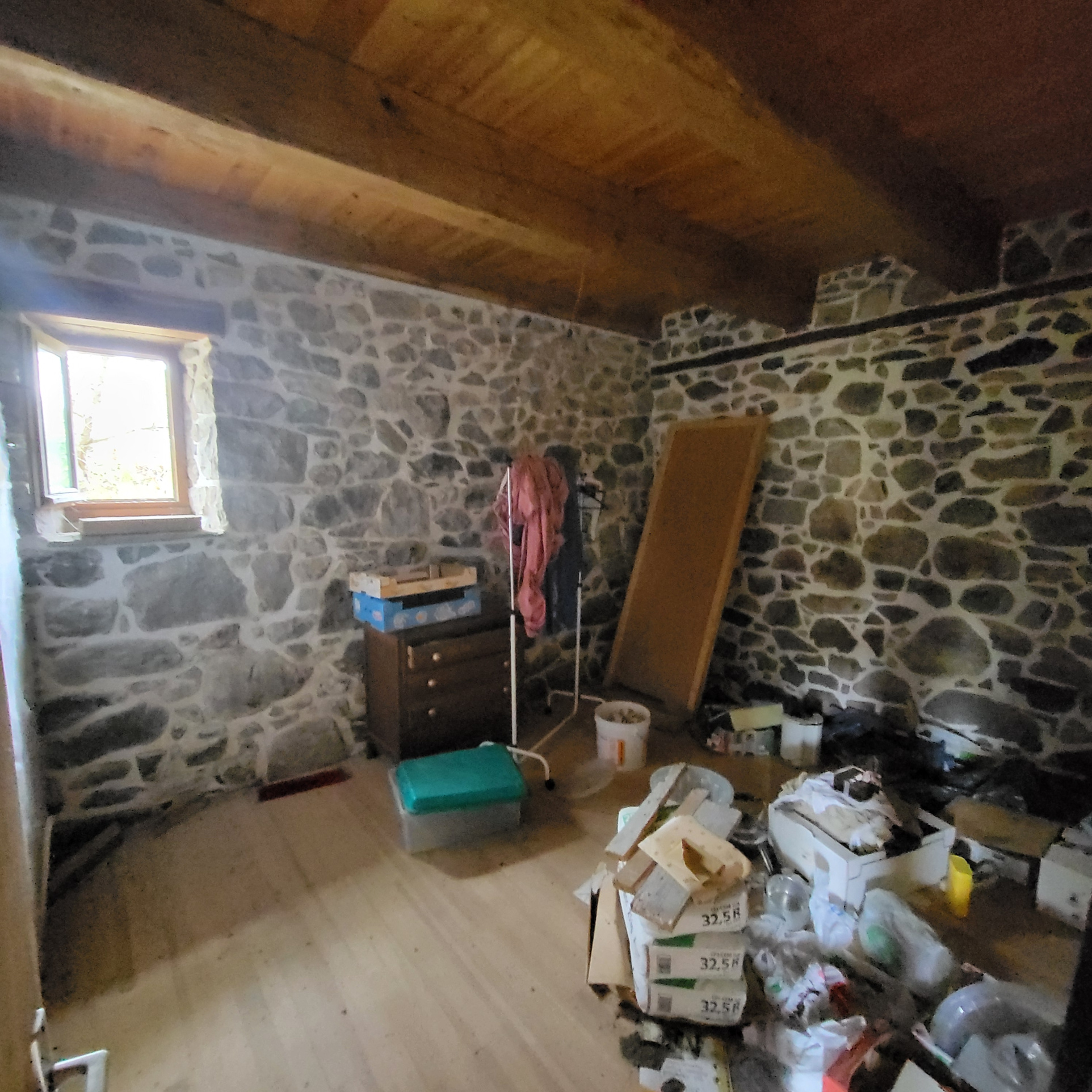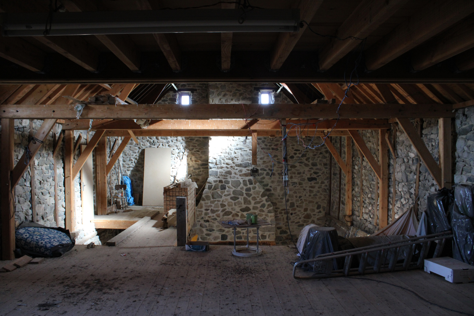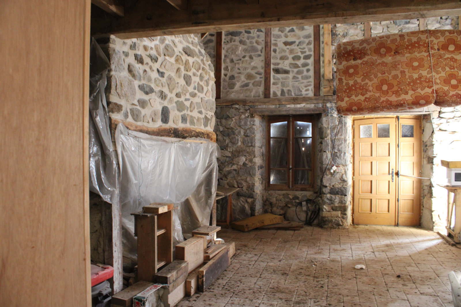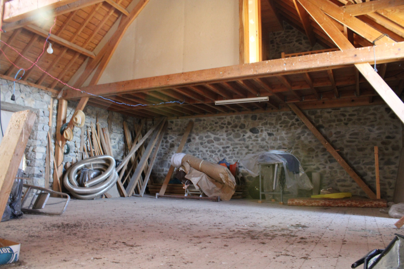La maiosn est composée d'une grande piéce de vie avec plafond cathédrale avec grande cheminée en pierres,, 2 chambres, une salle de bain avec douche et baignoire, wc séparée, coin buanderie.
