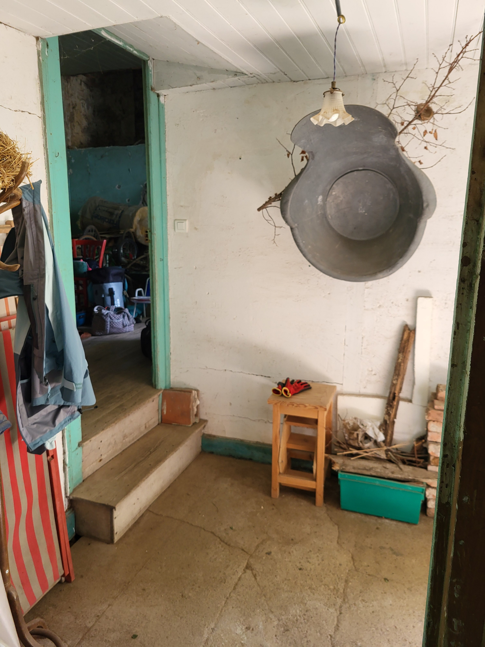 Au rez-de chaussée une entrée, une cuisine, grande piéce avec belle hauteur sous plafond (ancienne salle de classe).