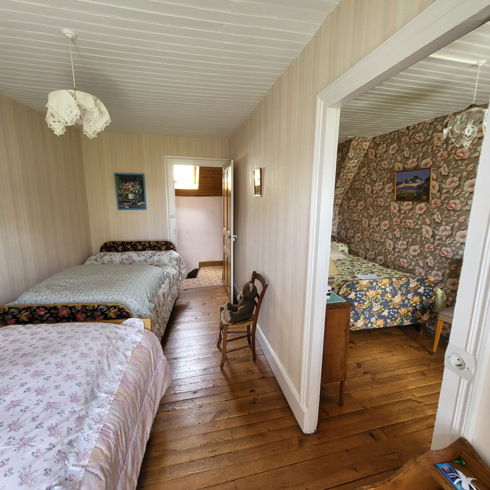 A l'étage, un dégagement avec palcards, 2 chambres et une salle d'eau/wc.