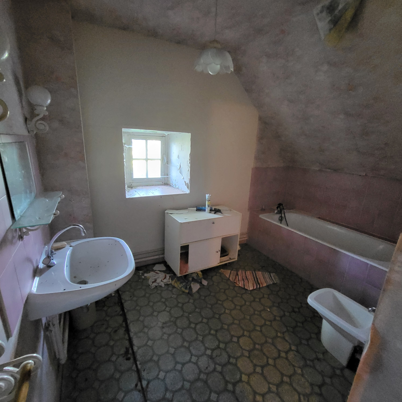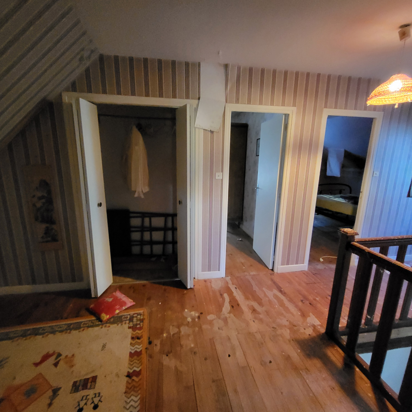 A l'étage ,un grand dégagement-bureau avec placards, 3 chambres, un wc, une salle de bain.