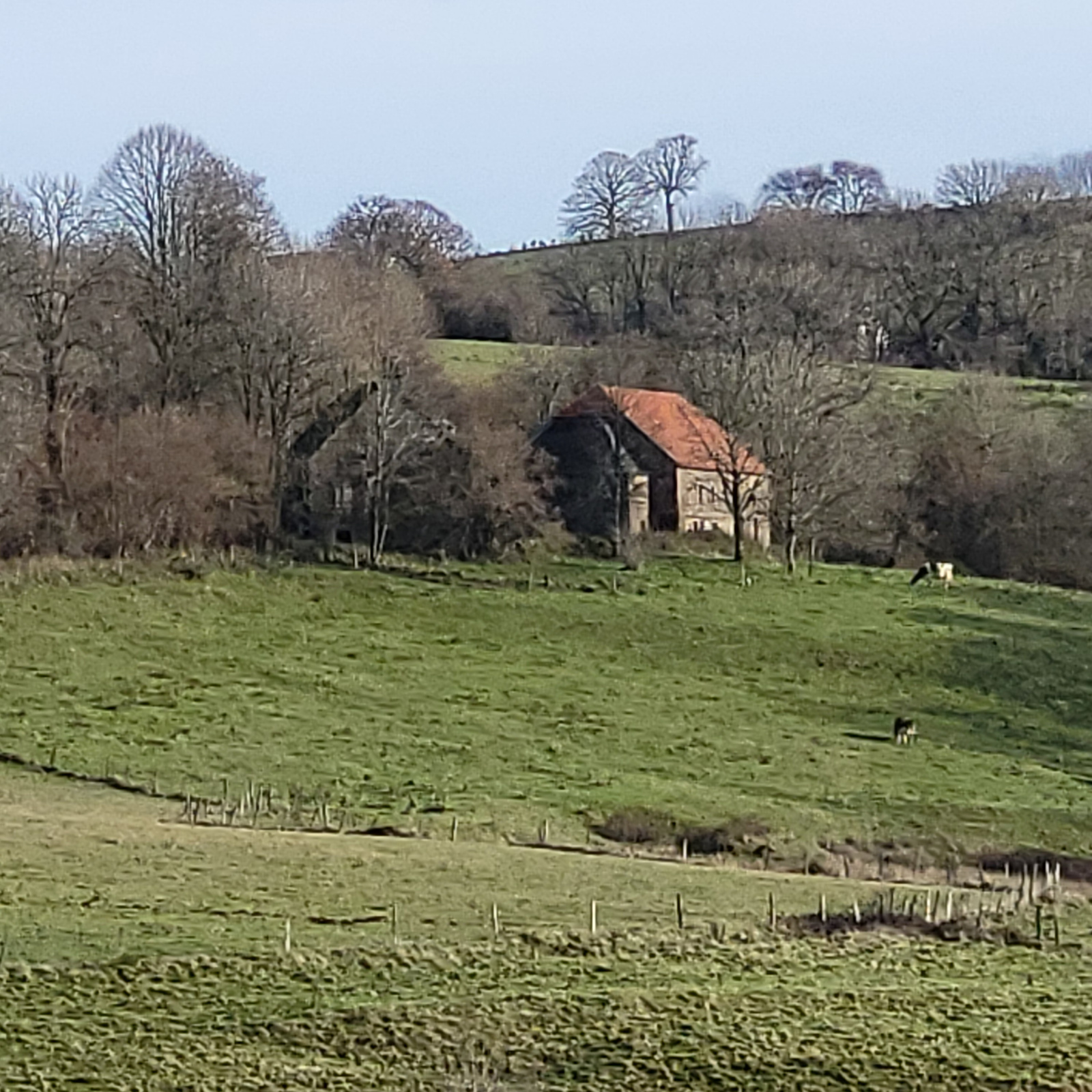 Terrain de 1145m² avec la possibilité d'avoir un peu plus, belle vue dégagée sur la campagne environante, prévoir travaux.