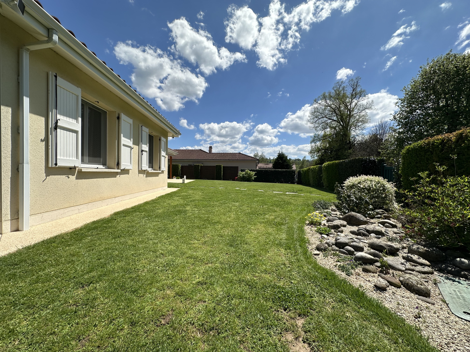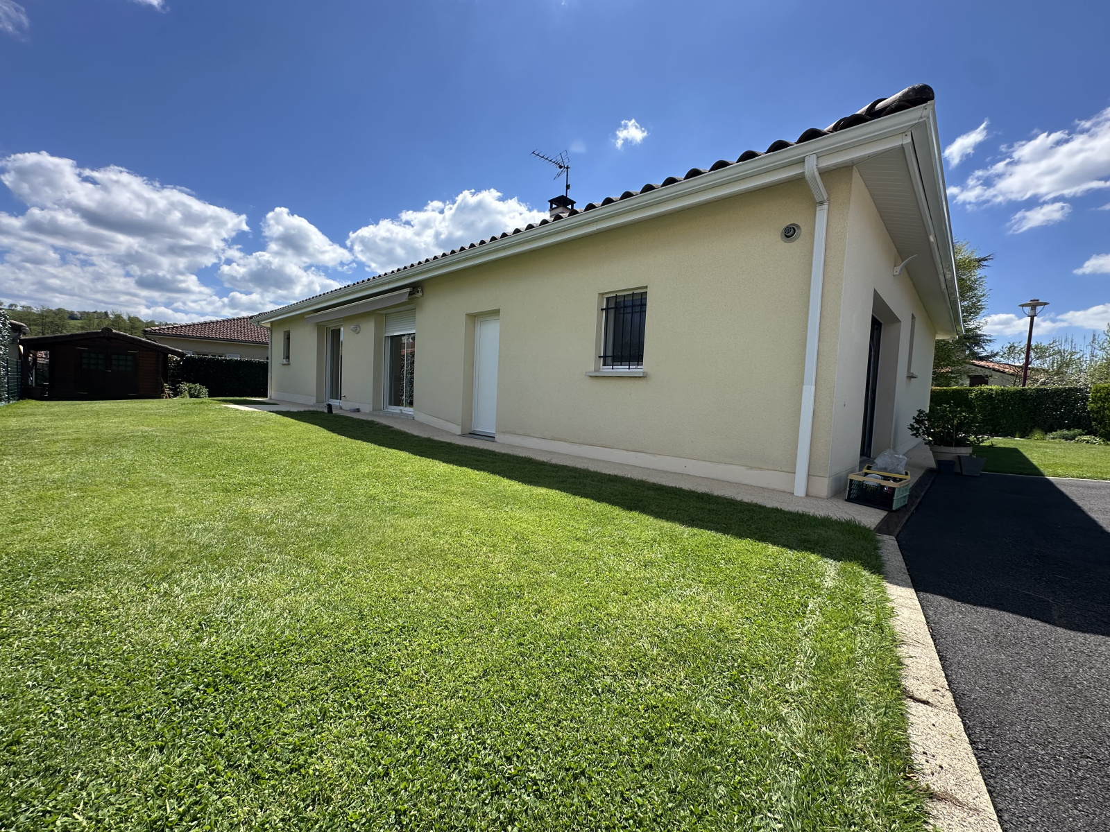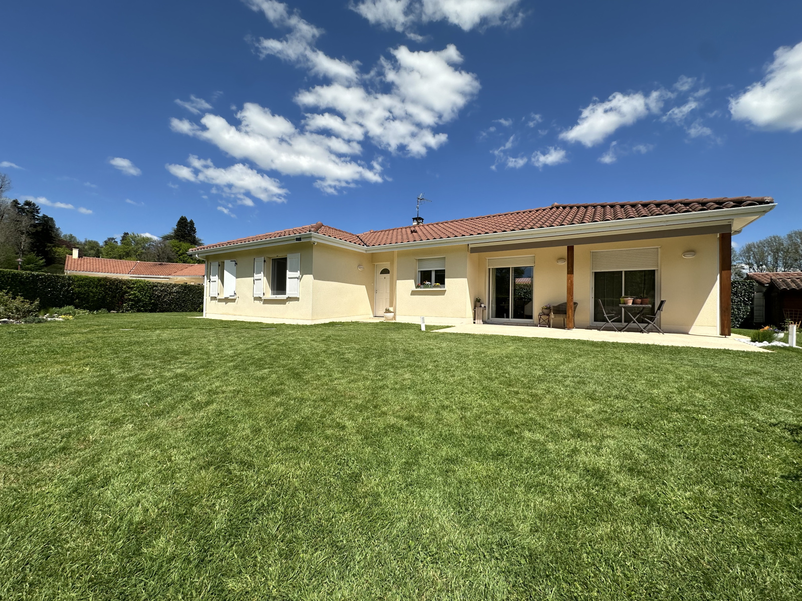 Bien rare. Idéalement situé et dans un environnement calme et paisible, je vous invite à venir découvrir cette charmante maison de plain-pied aux prestations de qualité (Arosage automatique, store, porte de garage et portail motorisé, cour en enrobé, terrasses en revêtement Hydro'Hay).