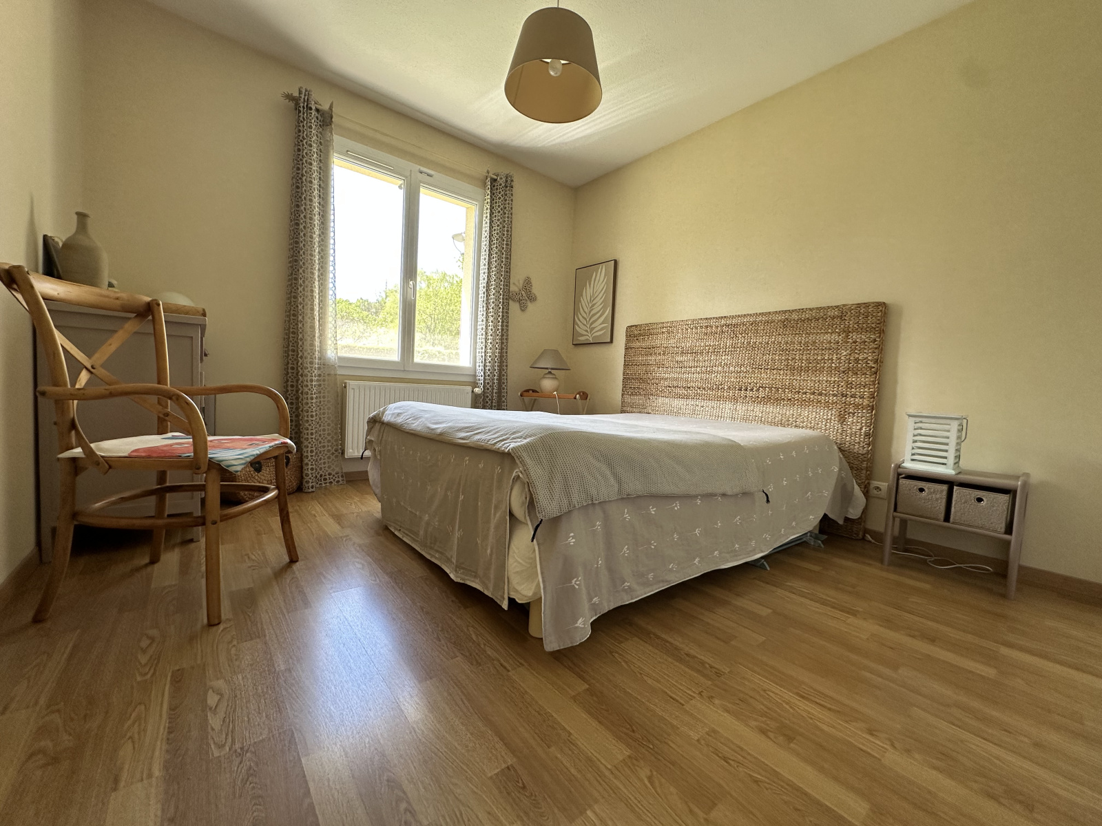 Composée d'une agréable pièce de vie spacieuse et lumineuse ouverte sur des extérieurs soignés et arborés, d'une cuisine semi-ouverte donnant accès à une terrasse bien exposée, d'une suite parentale avec salle d'eau et rangement.