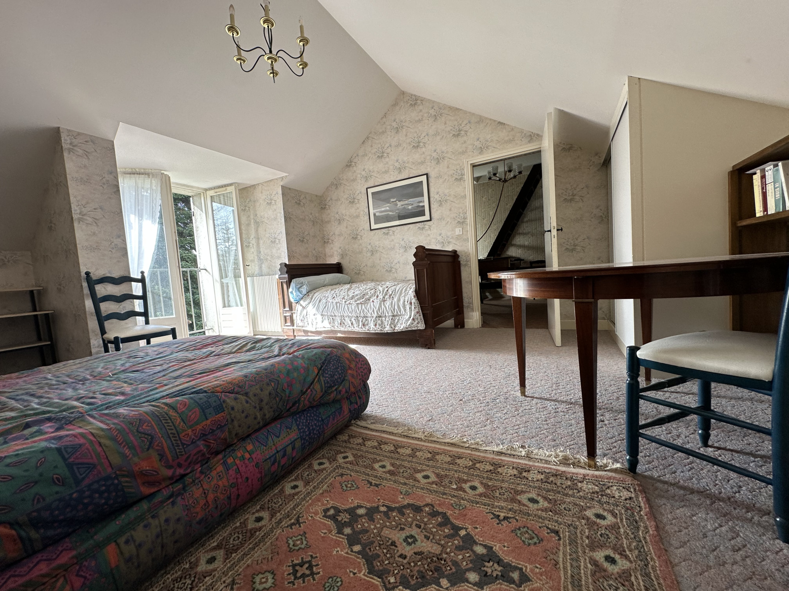 A l'étage, le coin nuit vous offre quatre chambres spacieuses supplémentaires avec une superbe vue sur le parc arboré, une salle de bain, un WC. Vous pourrez également profiter de différents espaces à aménager à votre convenance. (jeux,bureau).