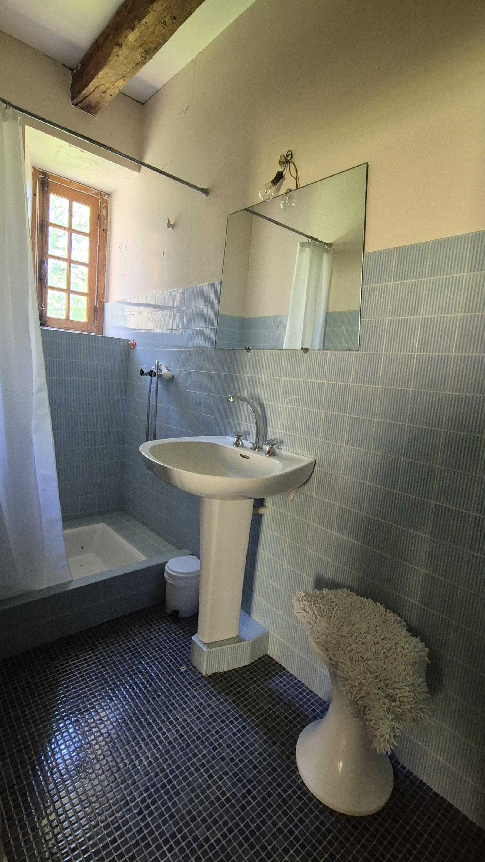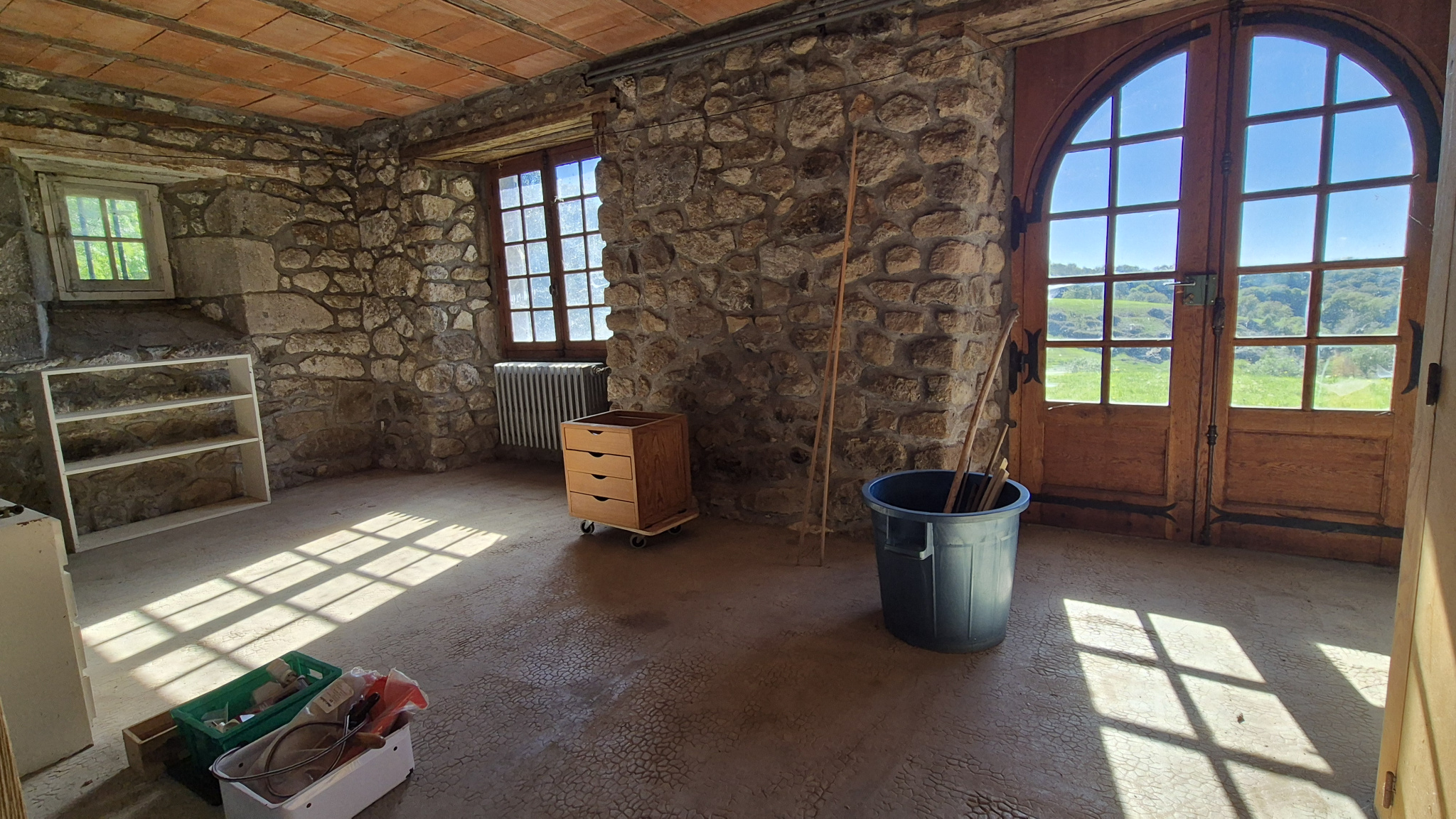 Tableau électrique récent, chauffage fioul, menuiseries simple vitrage, fosse septique à refaire.