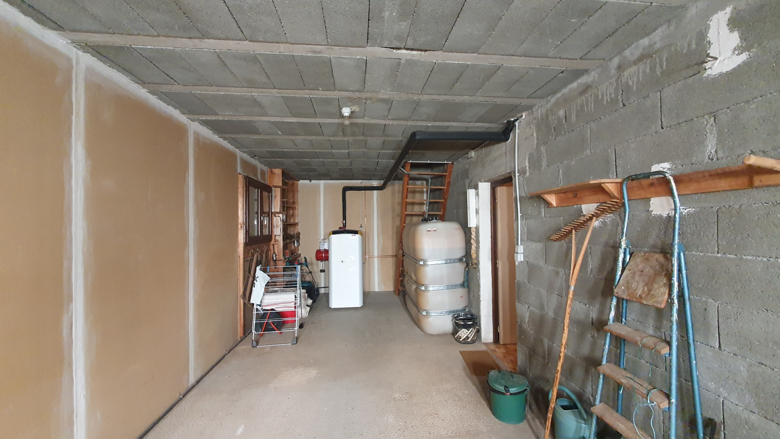 La construction de 1982, le sous-bassement en pierres de Bouzentès. Chauffage central au fioul.