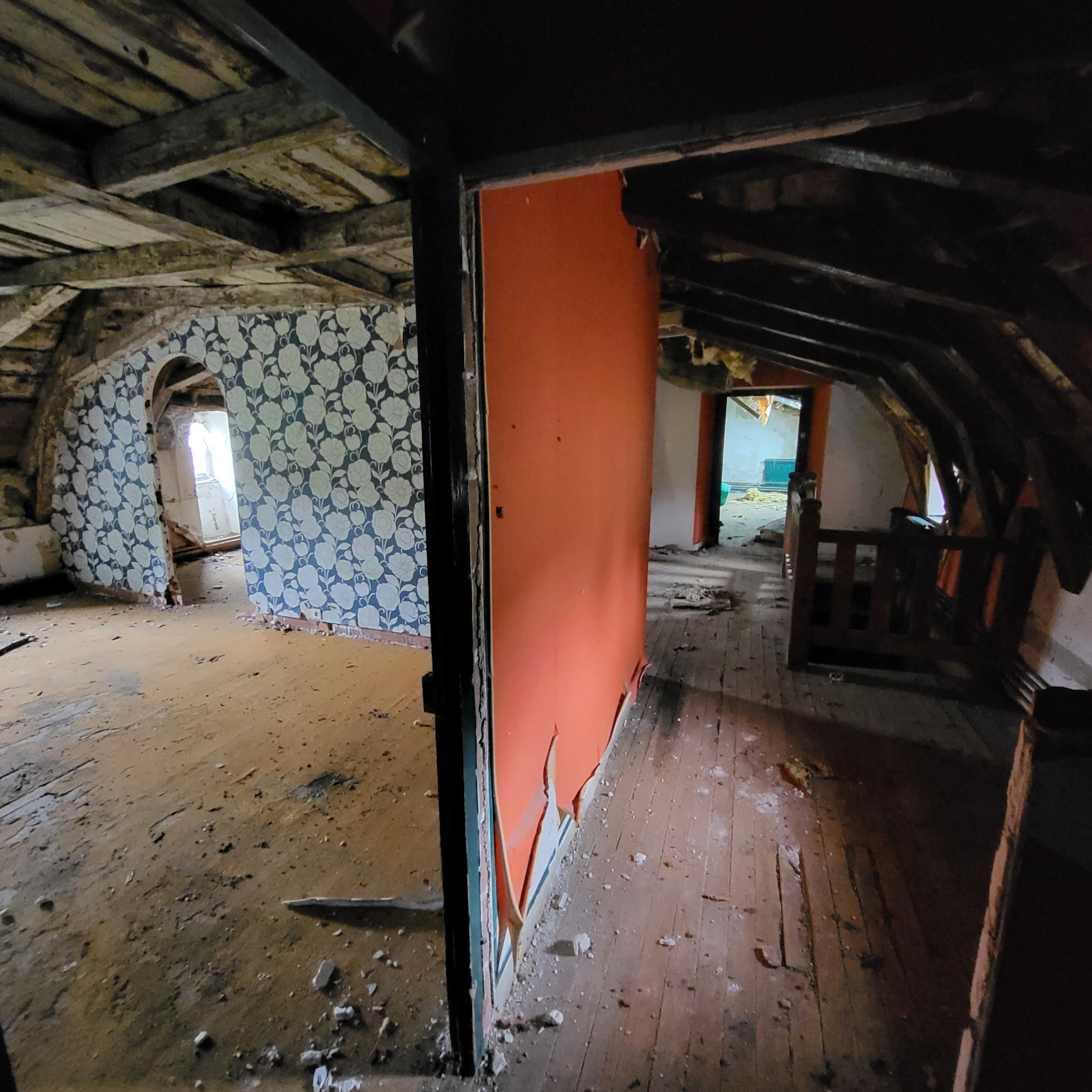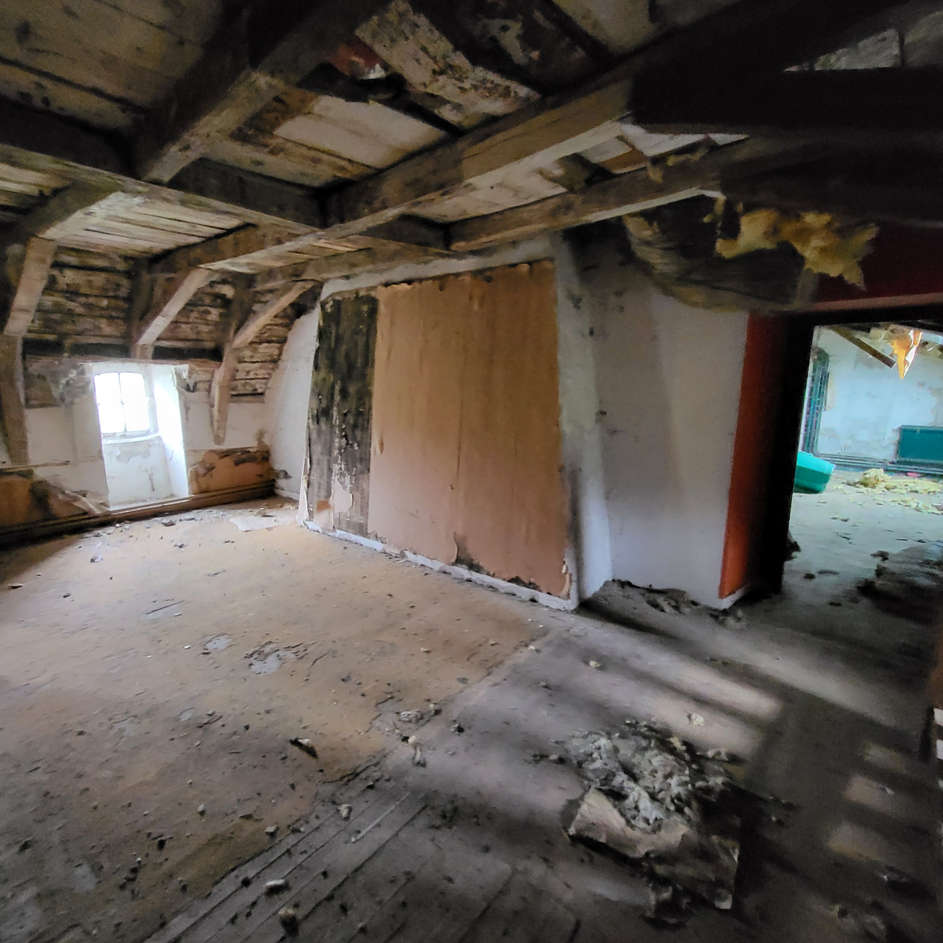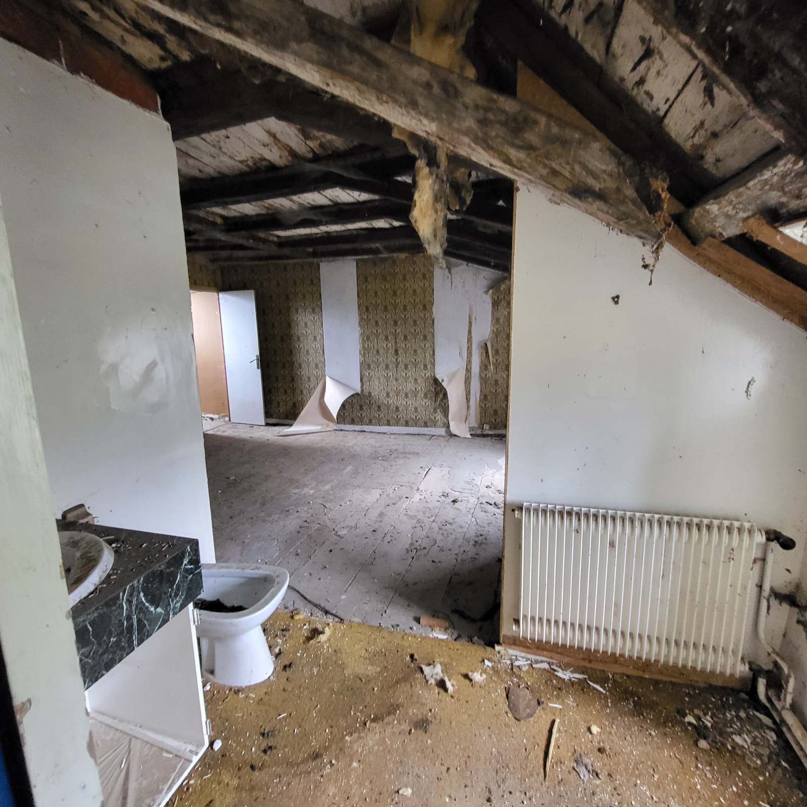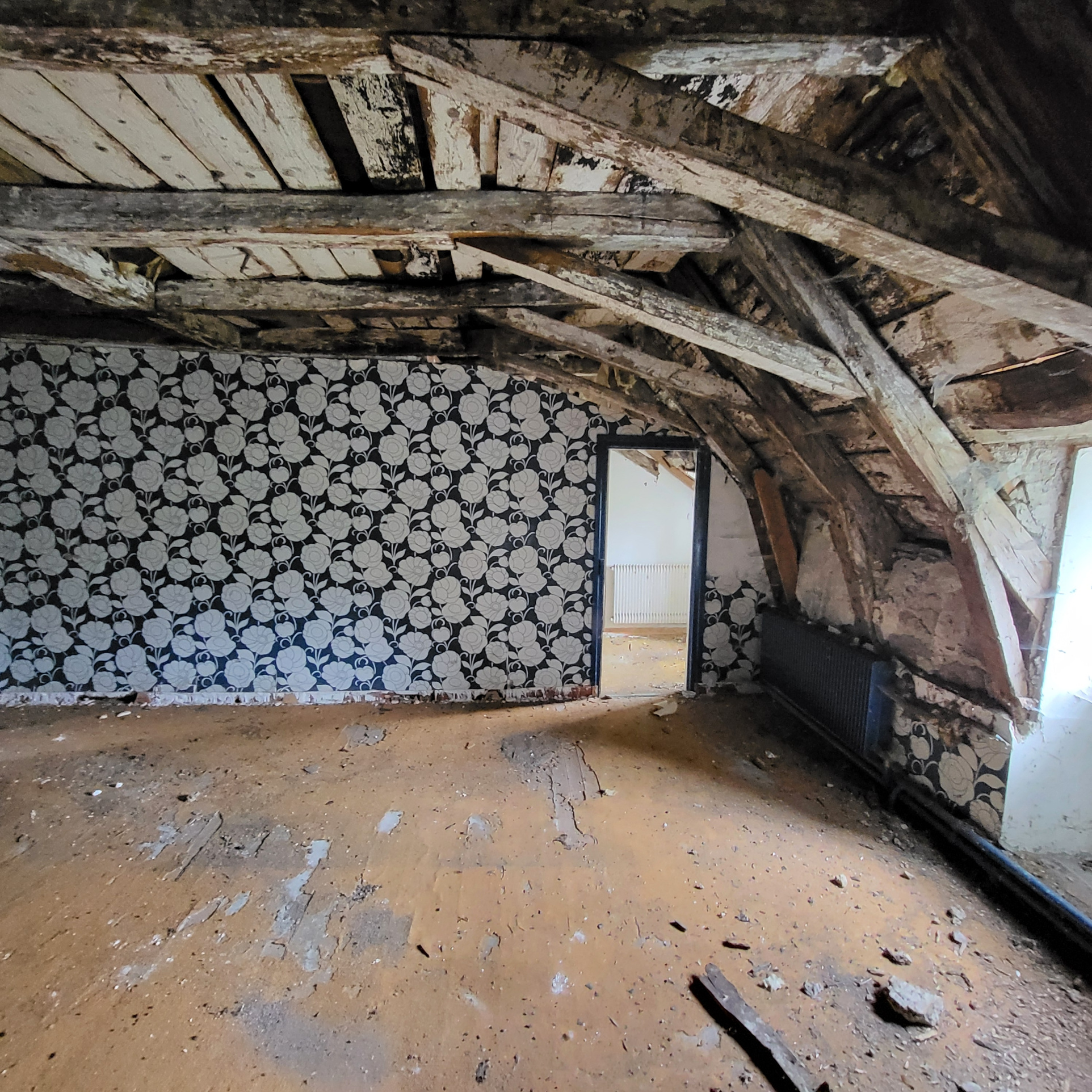 A l'étage, grand plateau à redistribuer avec ancienne chaufferie (chauffage central fioul).