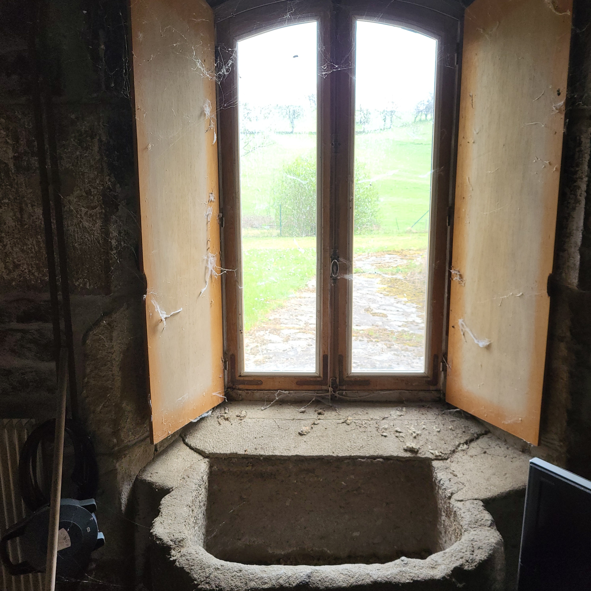 A l'exterieur, terrain plat, piscine enterrée (liner à remplacer), vue sur la campagne environnante au calme abslolu !.