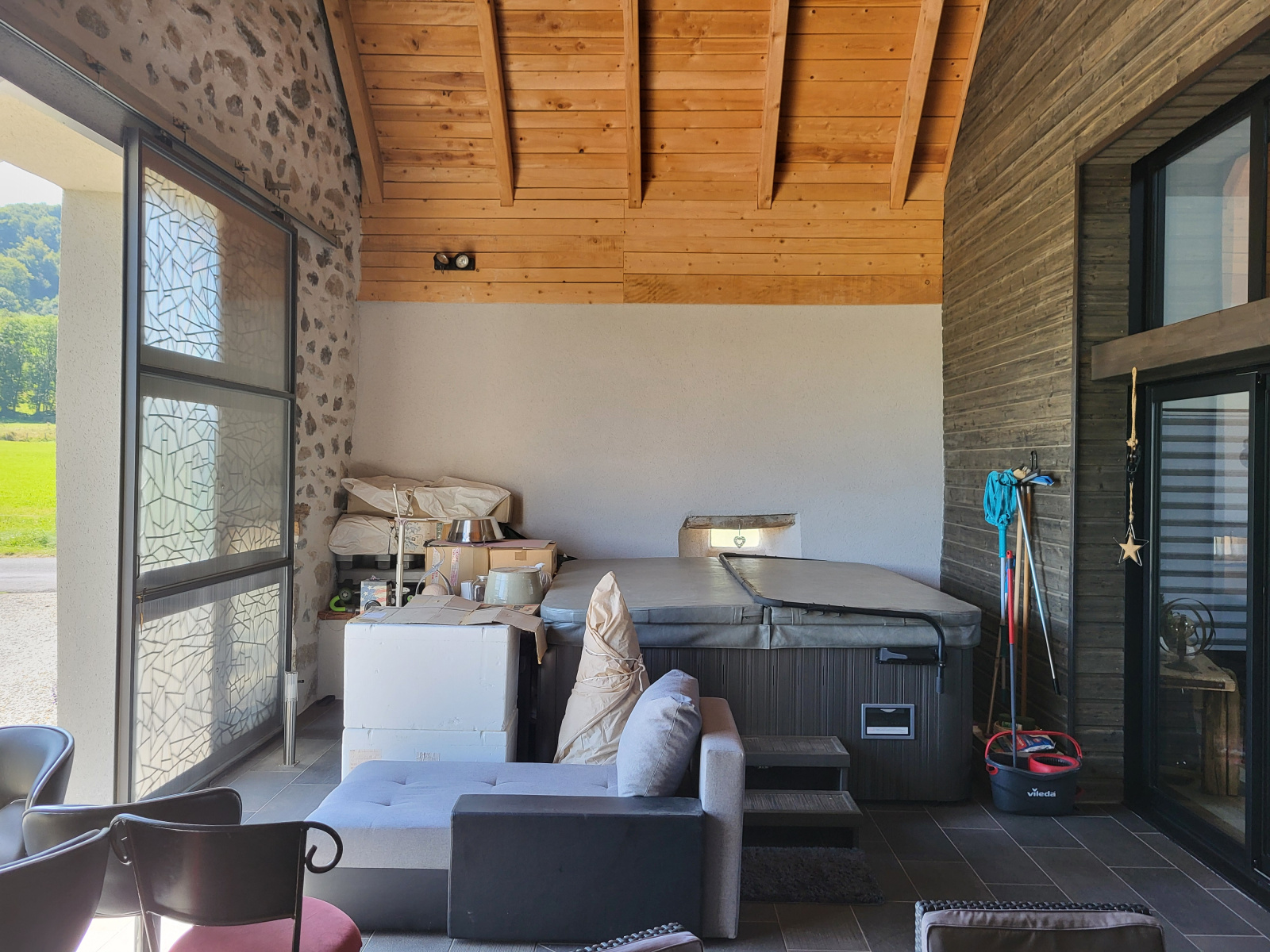 La première maison, ancienne grange entièrement rénovée par un architecte offrant des prestations haut de gamme. Elle est composée au rez-de-chaussée, d'une entrée avec placards, magnifique pièce de vie en plafond cathédrale donnant sur une terrasse couverte avec un Jacuzzi. Sur une seconde partie , on trouve une chambre, un dressing, un wc séparé, une salle d'eau avec douche à l'Italienne, une buanderie/espace techinique. A l'étage, bureau en mezzanine, 3 grandes chambres avec placards, salle de bain /wc. VMC double flux, pompe à chaleur plancher chauffant, aspiration centralisée, domotique pour l'ouverture des fenêtres de toit et volets. Un grand garage qui permet de stationner facilement 4 véhicules. Sur l'arrière, on bénéficie d'une vue panoramique sur les champs, le Puy de SANCY et Valette, sans vis à vis.