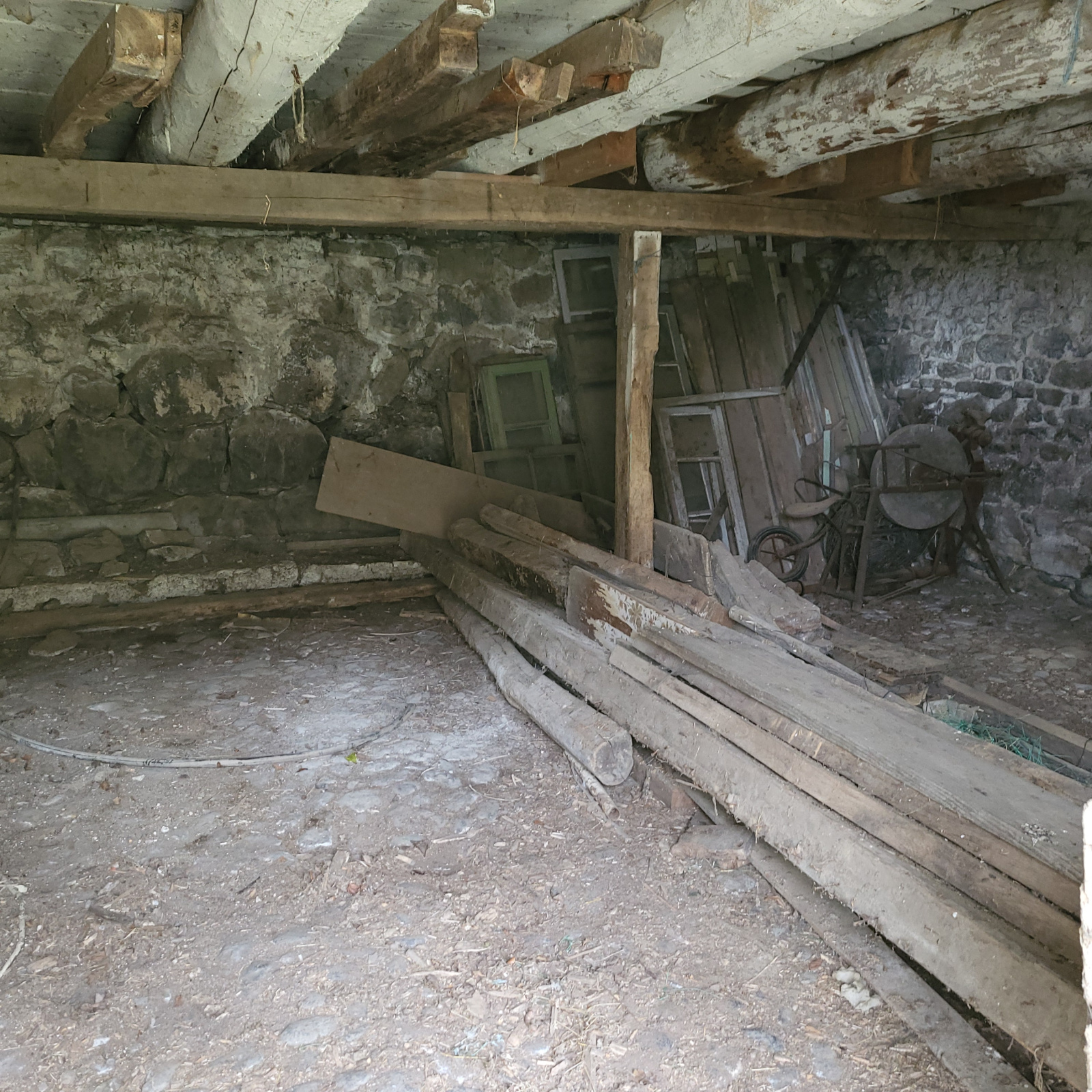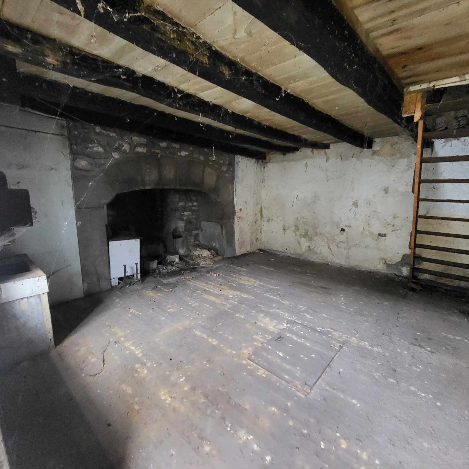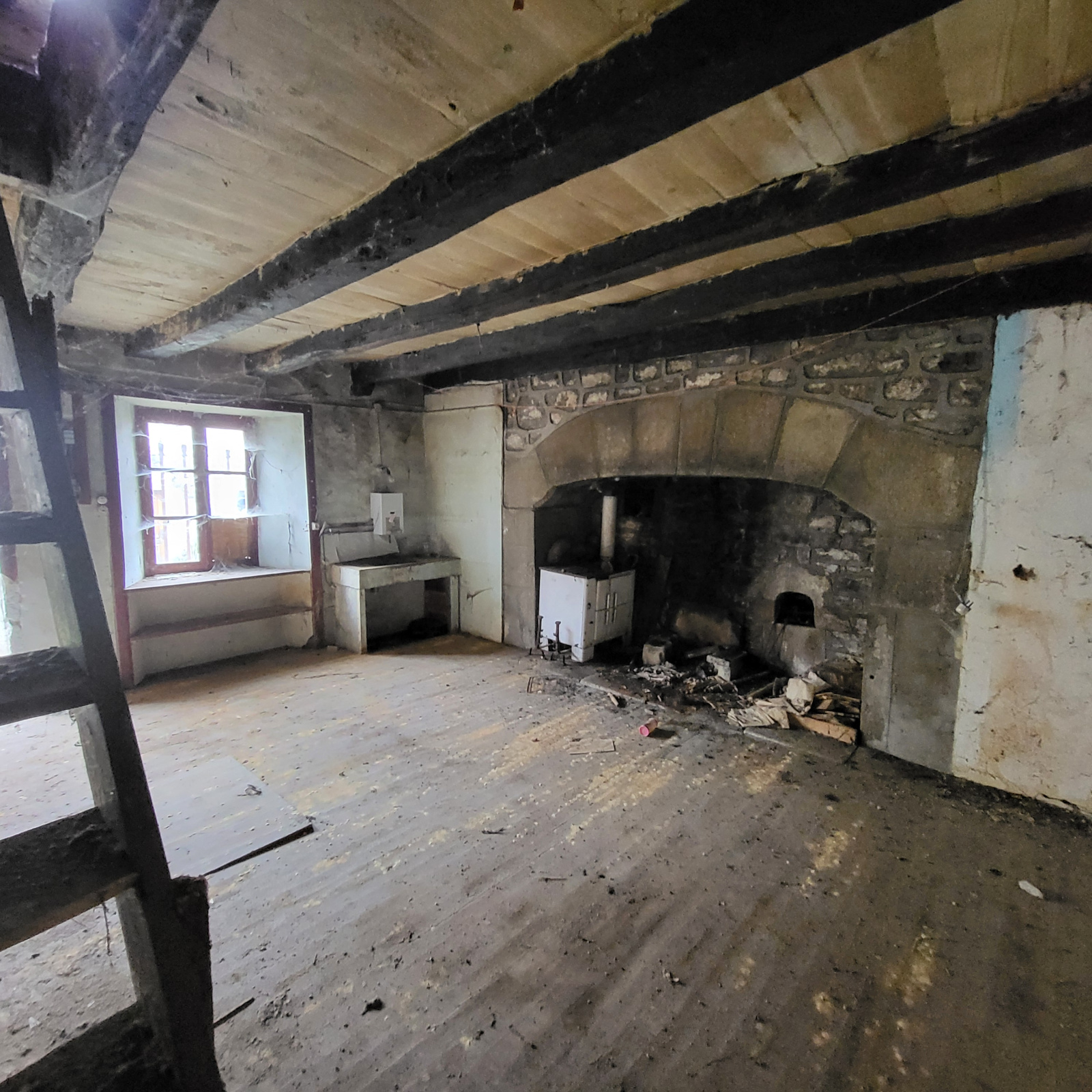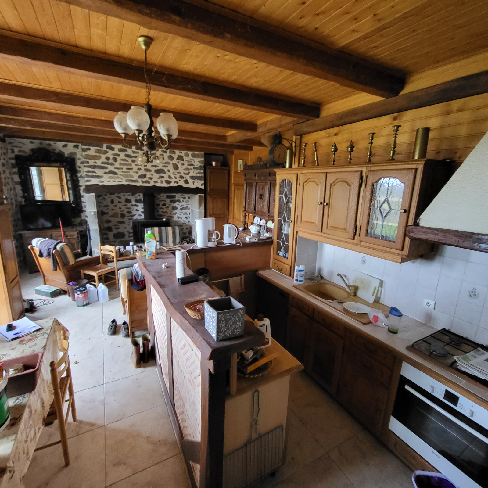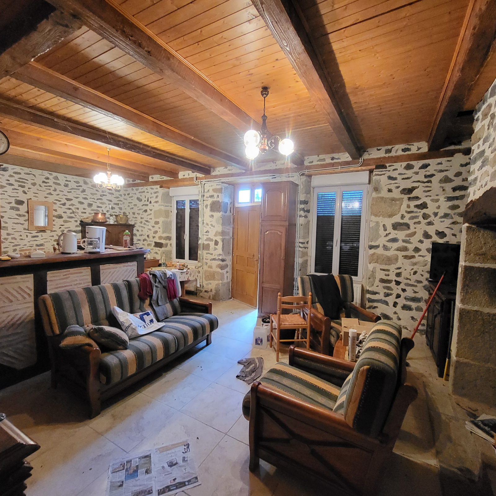 La maison fait 81m² habitable, elle est composée au rez-de-chaussée d'une pièce de vie avec Cantou, wc, salle d'eau.