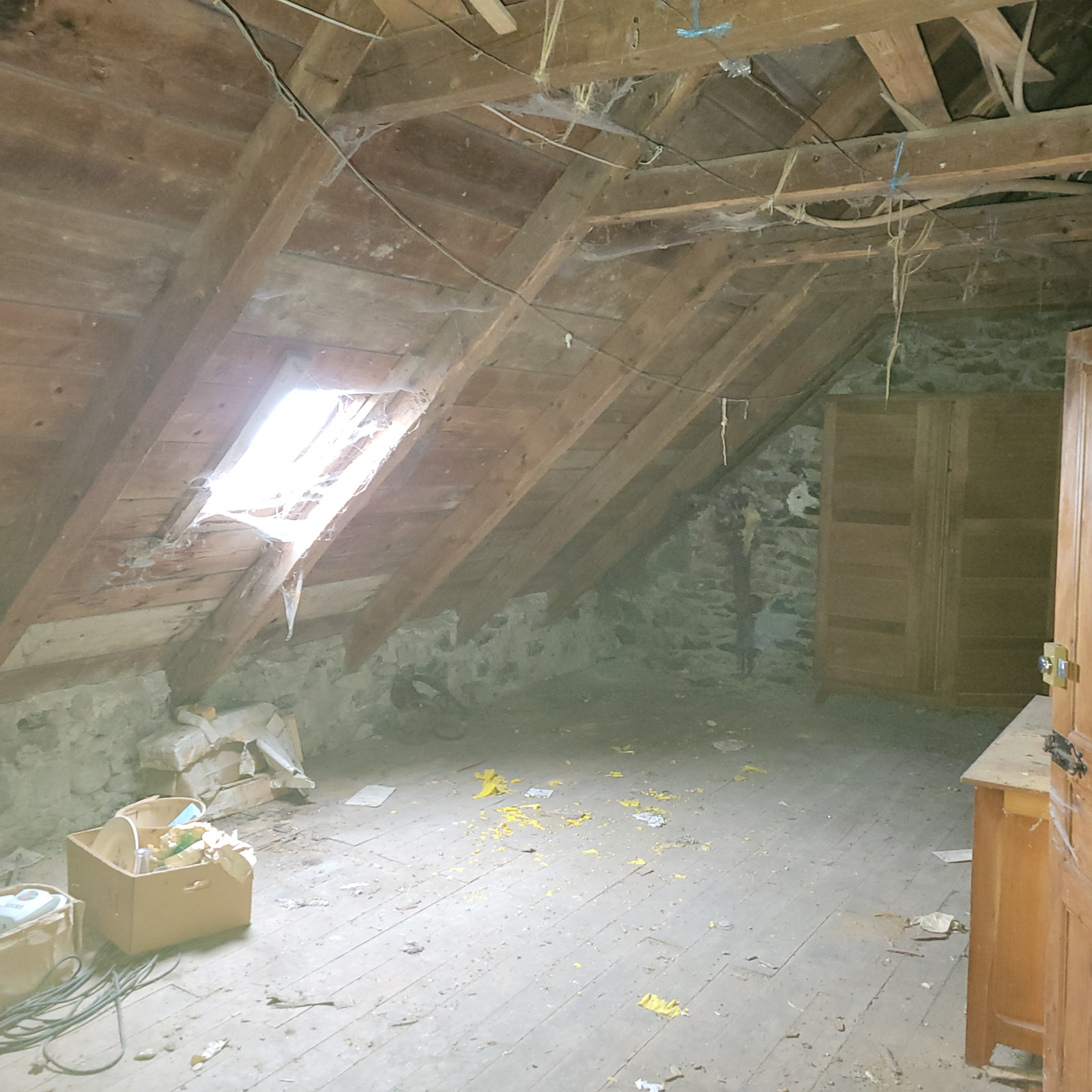 Accés aux combles avec belle hauteur pouvant être amménagés.