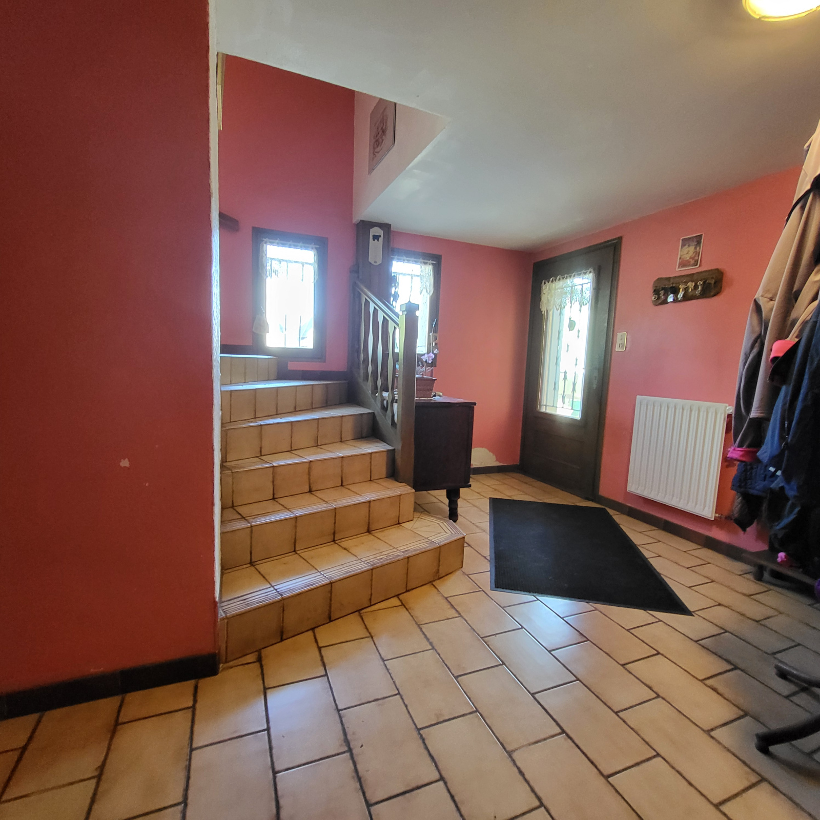 La maison est composée au rez-de-chaussée, d'une entrée, chambre/bureau, garage-chaufferie, cave.
