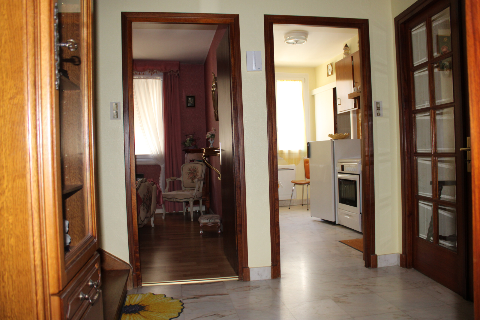 A l'étage, une cuisine, un séjour, deux chambres, une salle de bain avec wc.