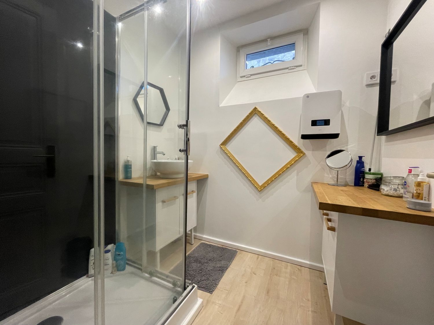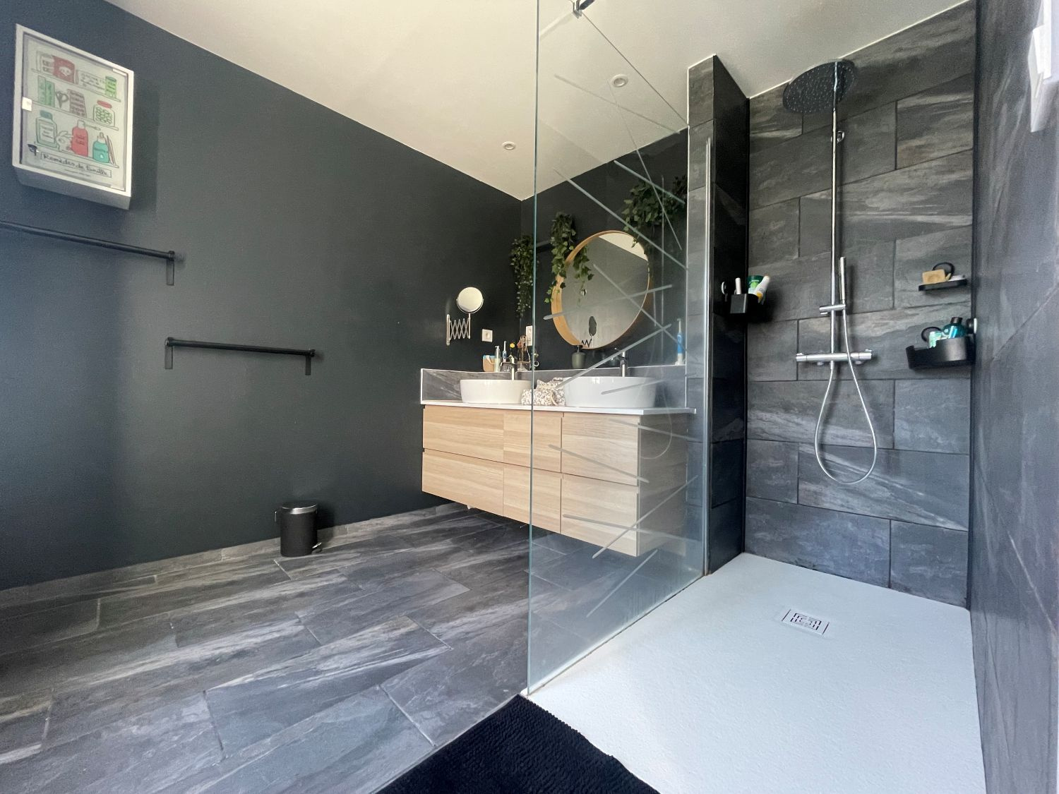 Très lumineuse, la pièce de vie intègre un salon avec accès terrasse, une cuisine moderne et conviviale, parfaite pour les moments en famille ou entre amis. Le rez-de-chaussée comprend également une buanderie, un cellier, un wc indépendant, un garage et une cave.