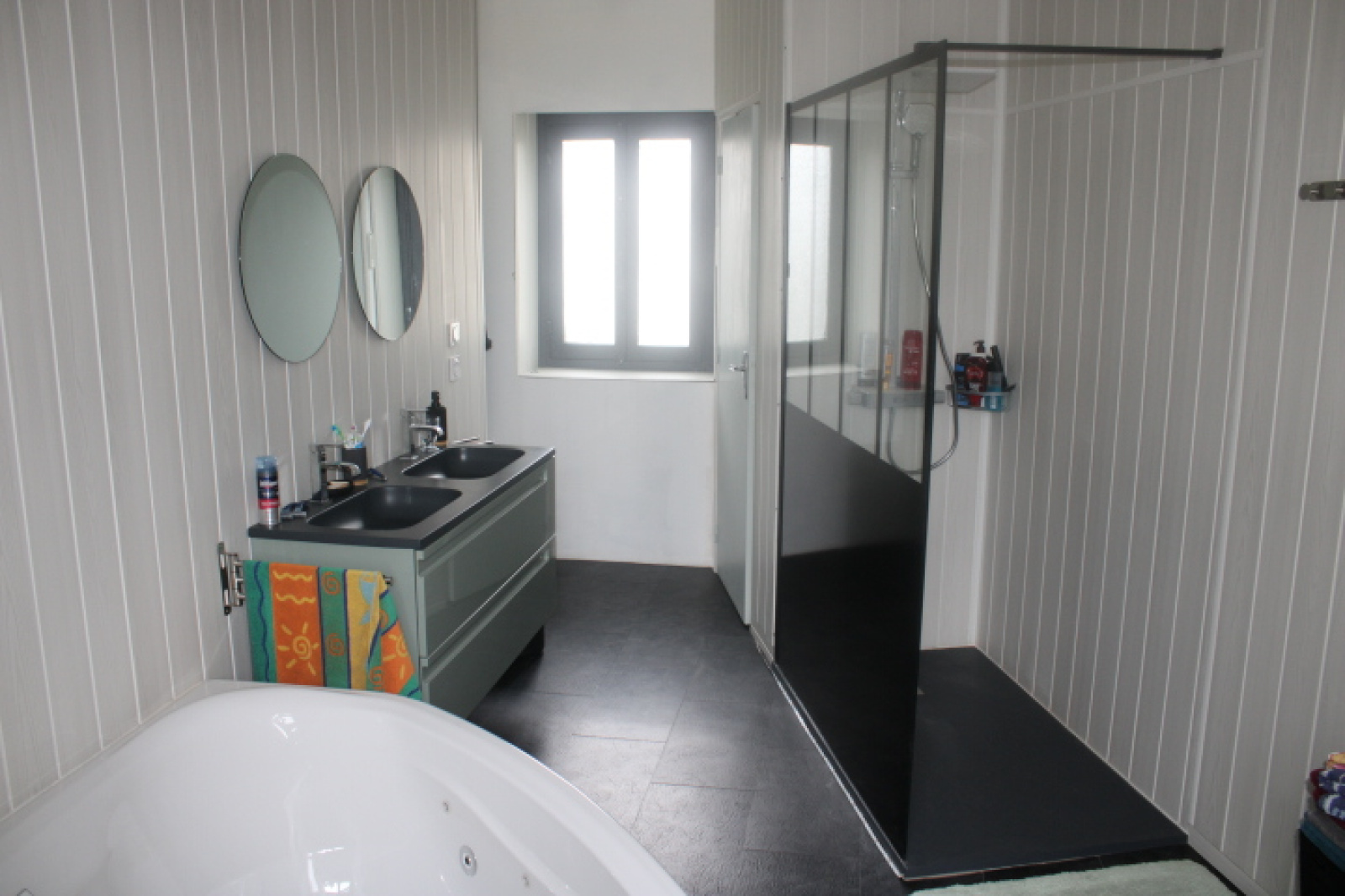 Deux chambres, une salle de bain avec baignoire balnéo et douche à l'Italienne, un wc.