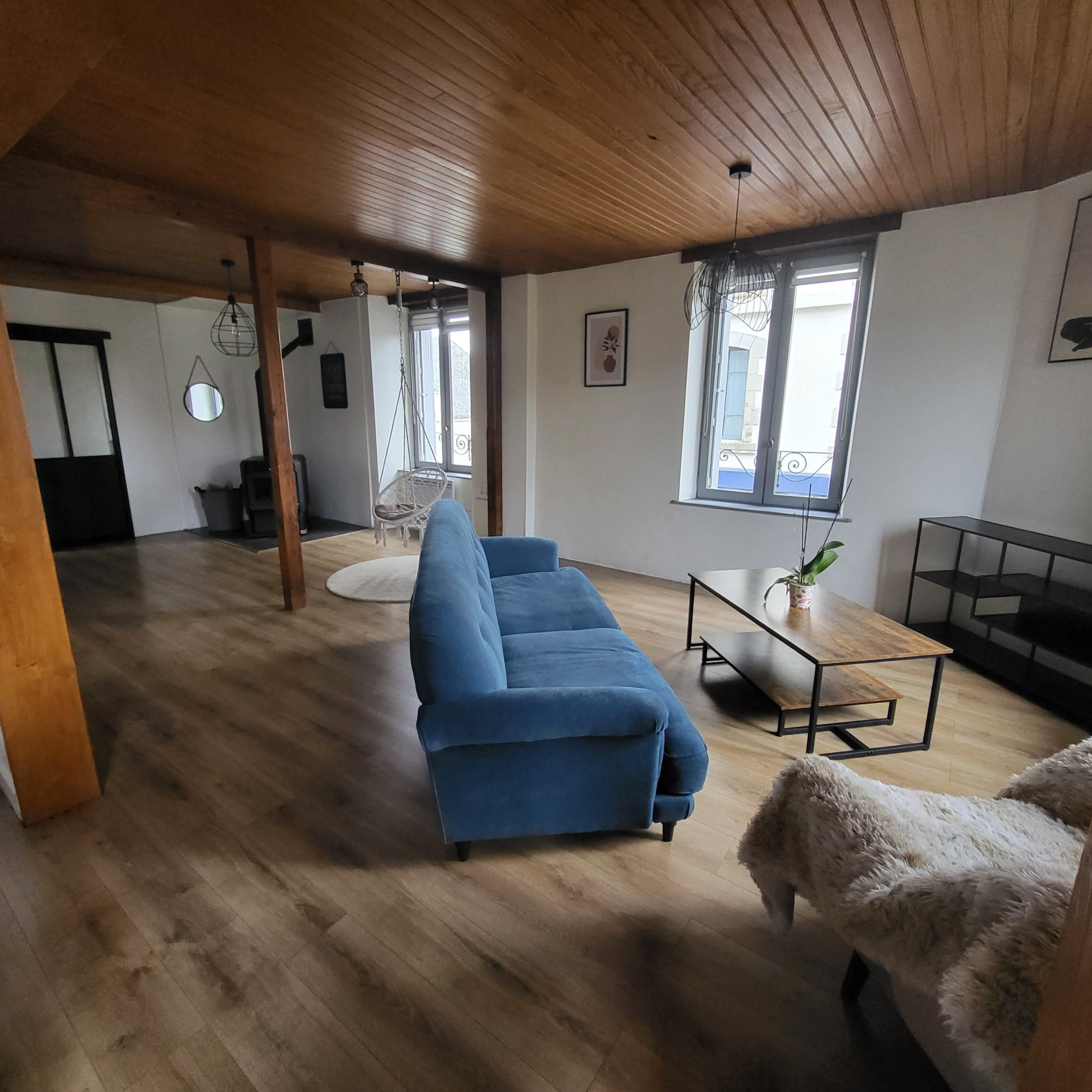 Poêle à granulés, double vitrage, cave, balcon.