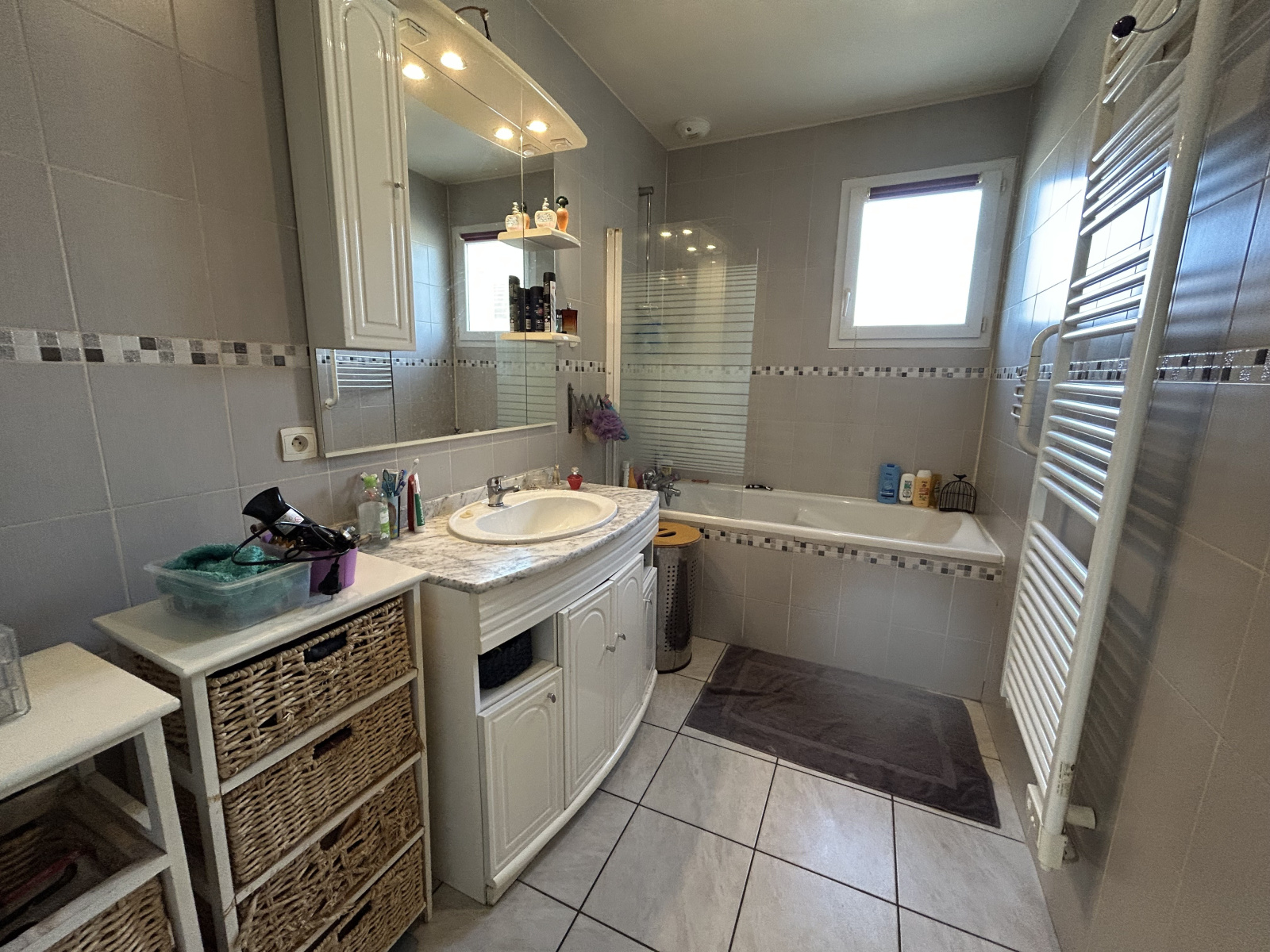 Commençons par le rez-de-chaussée et sa pièce de vie de 40 m2 avec salon/salle à manger et cuisine ouverte équipée, donnant sur la terrasse de 38 m2 fabuleusement exposée et sans vis à vis. Également, toujours au même niveau, trois chambres de volume similaire, ainsi que la salle de bain, un WC indépendant, et un cellier/buanderie où se situe le tableau électrique.