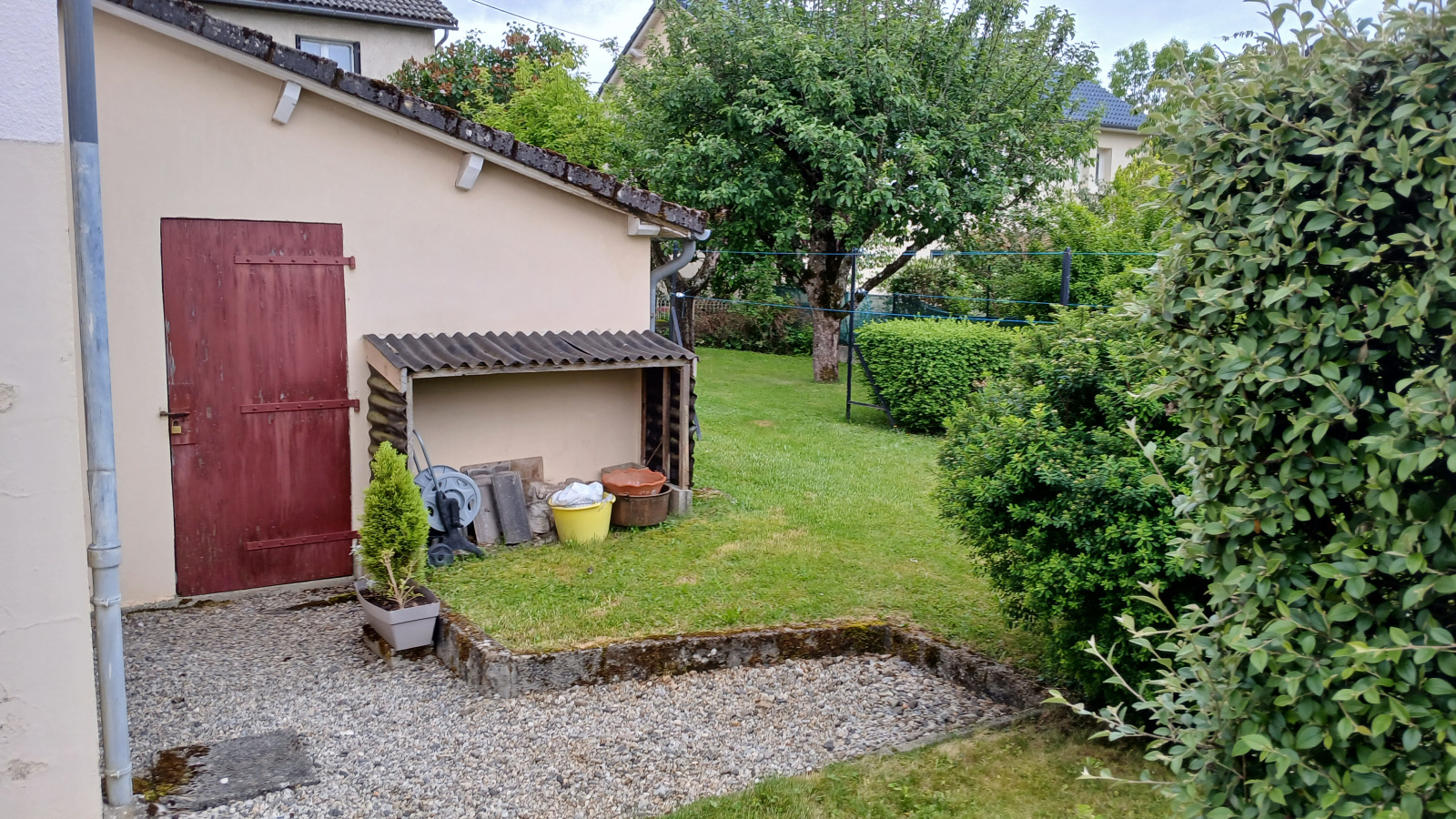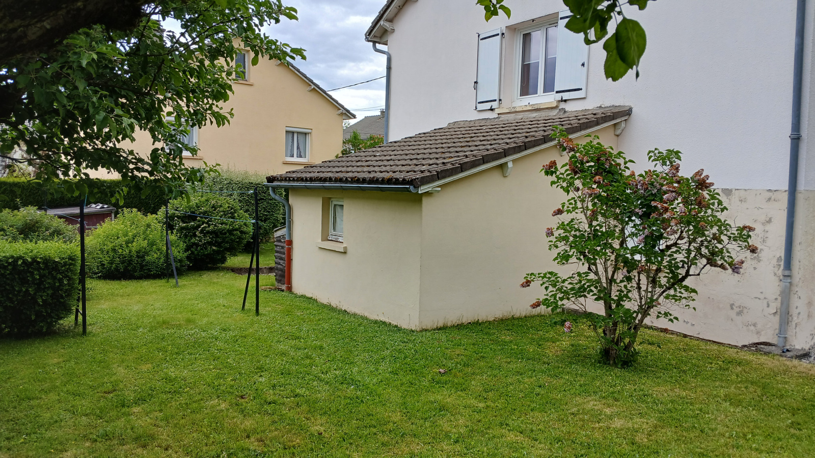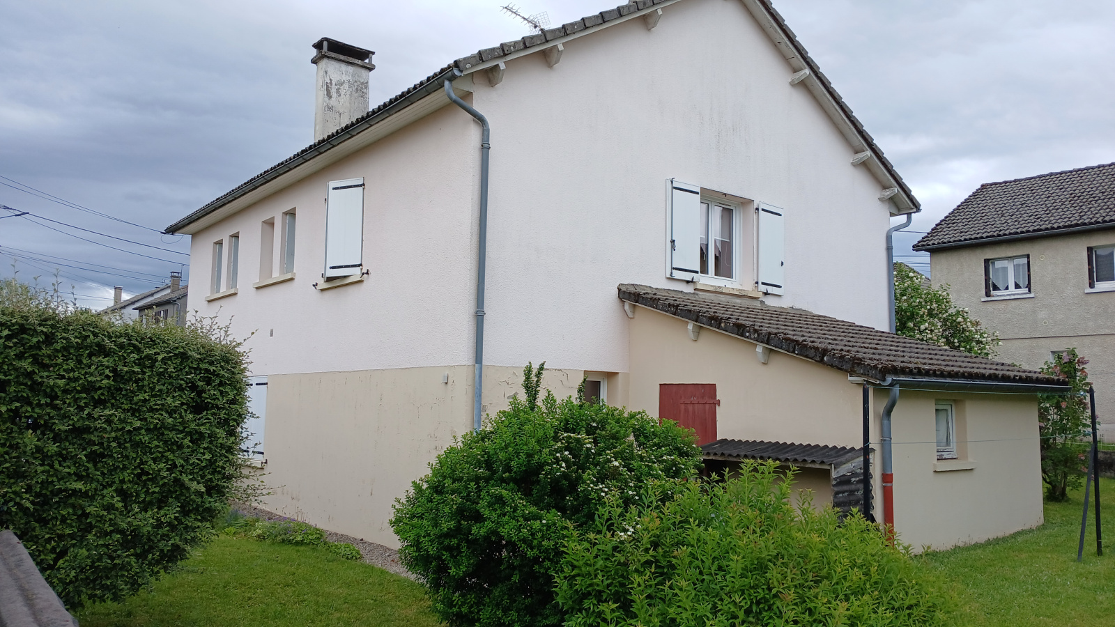 Proche du centre-ville, quartier calme, terrain avec deux abris de jardin. Chauffage central fuel, une chambre, un bureau, une buanderie et un garage en rez-de-chaussée; trois chambres à l'étage, salle de bain, pièce de vie et cuisine.
