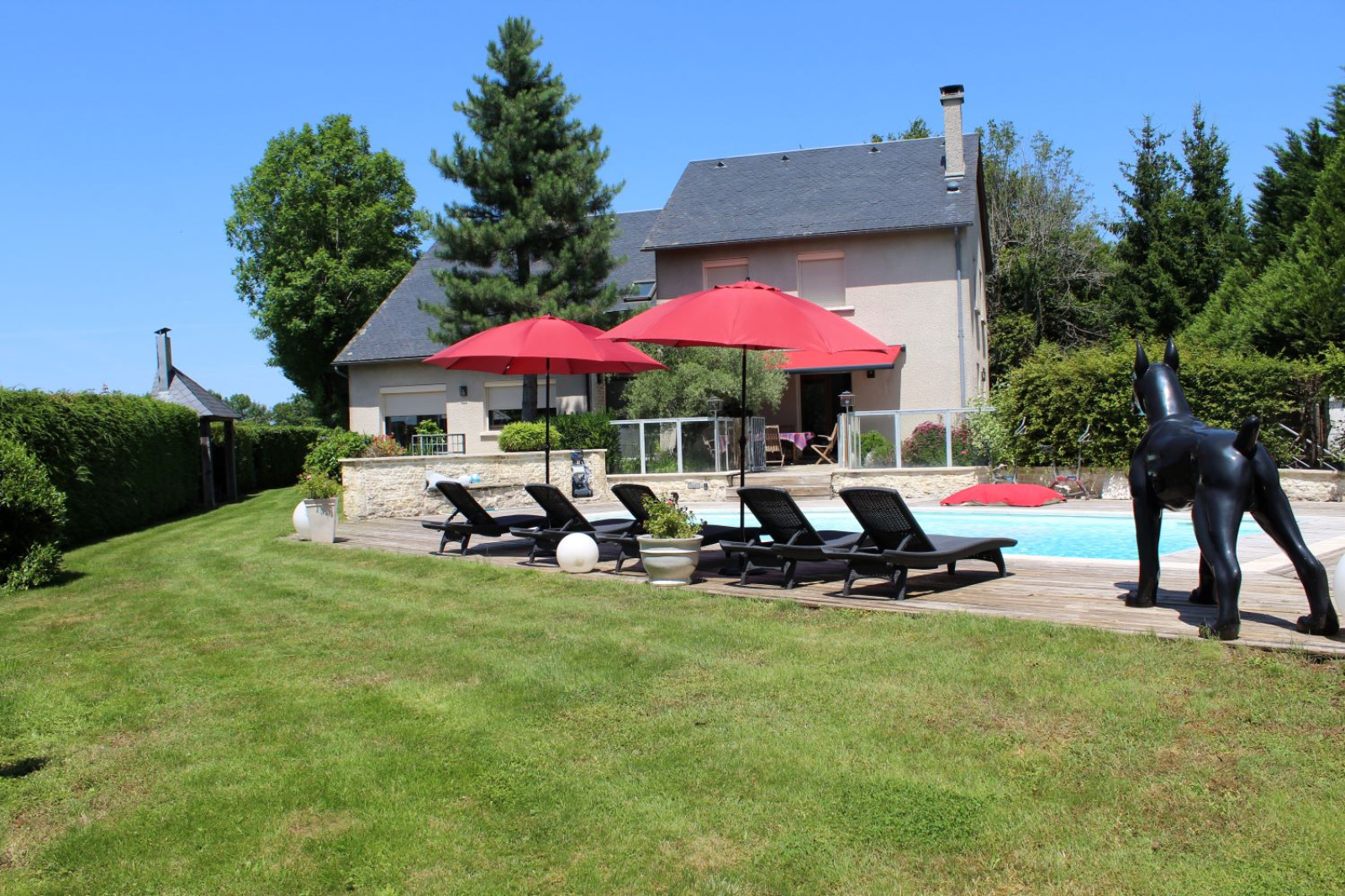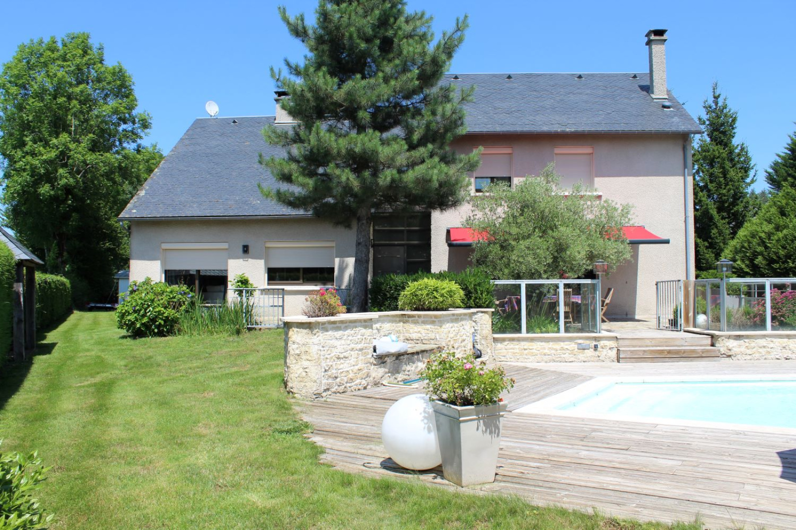 Très belle et grande maison des années 1980, proche du centre-ville de Mauriac, sur un beau terrain arboré de 3113m² avec piscine 10m par 5m chauffée (pompe à chaleur) traitement au sel, volet roulant de sécurité électrique. Maison avec 5 chambres dont une suite parentale avec dressing indépendant, grand salon avec cheminée, salle à manger, cuisine équipée avec accès sur deux terrasses, bureau, deux salles d'eau, une grande salle de bain et douche, salle de jeu, sous-sol avec garage double, chaufferie, lingerie, buanderie et cave.