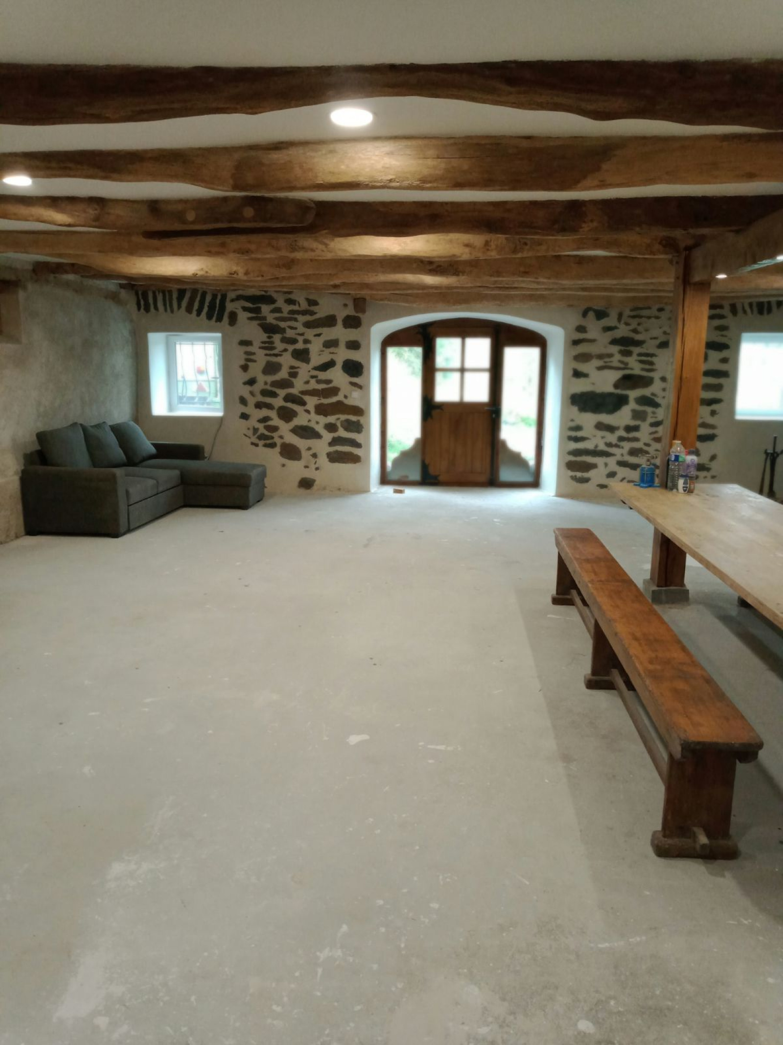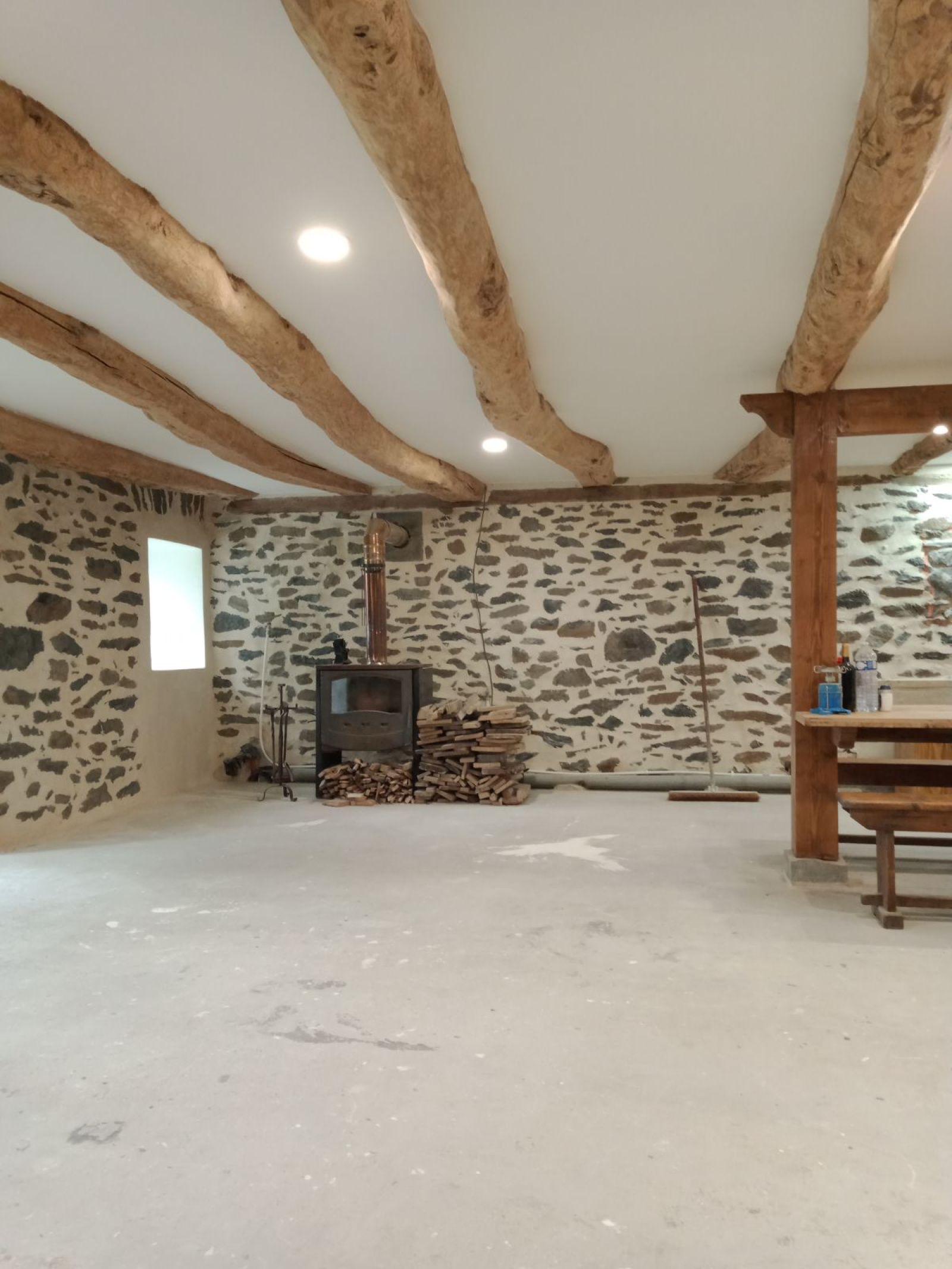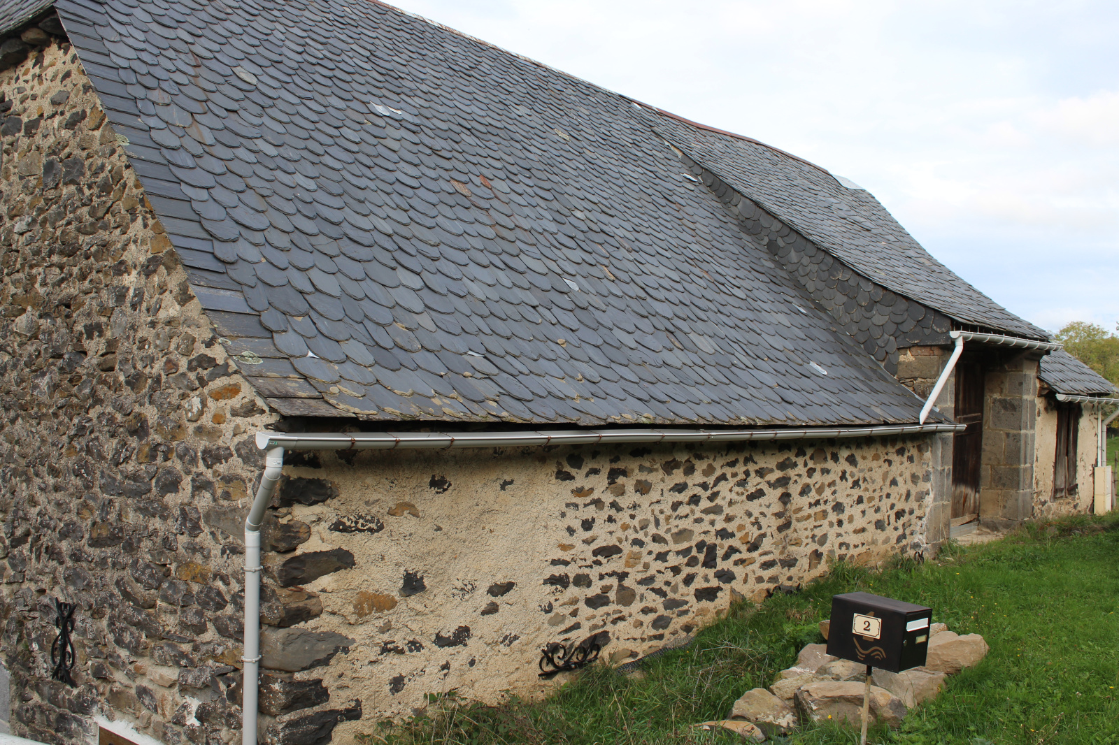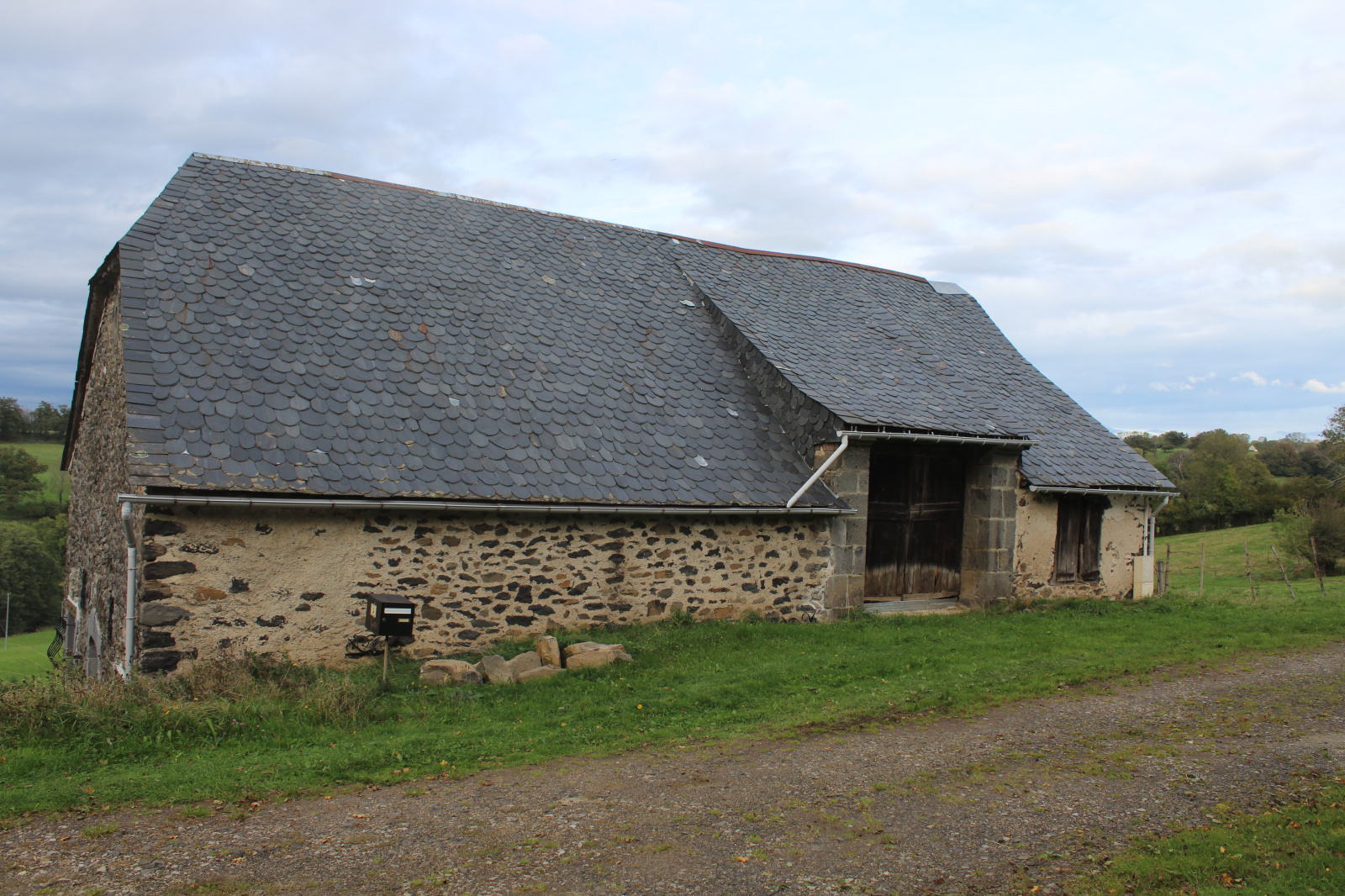 A 10 minutes de Salers, grange en cours de rénovation de 280m² (140m² par niveau) avec 2.6 hectares de terrain avec sources.