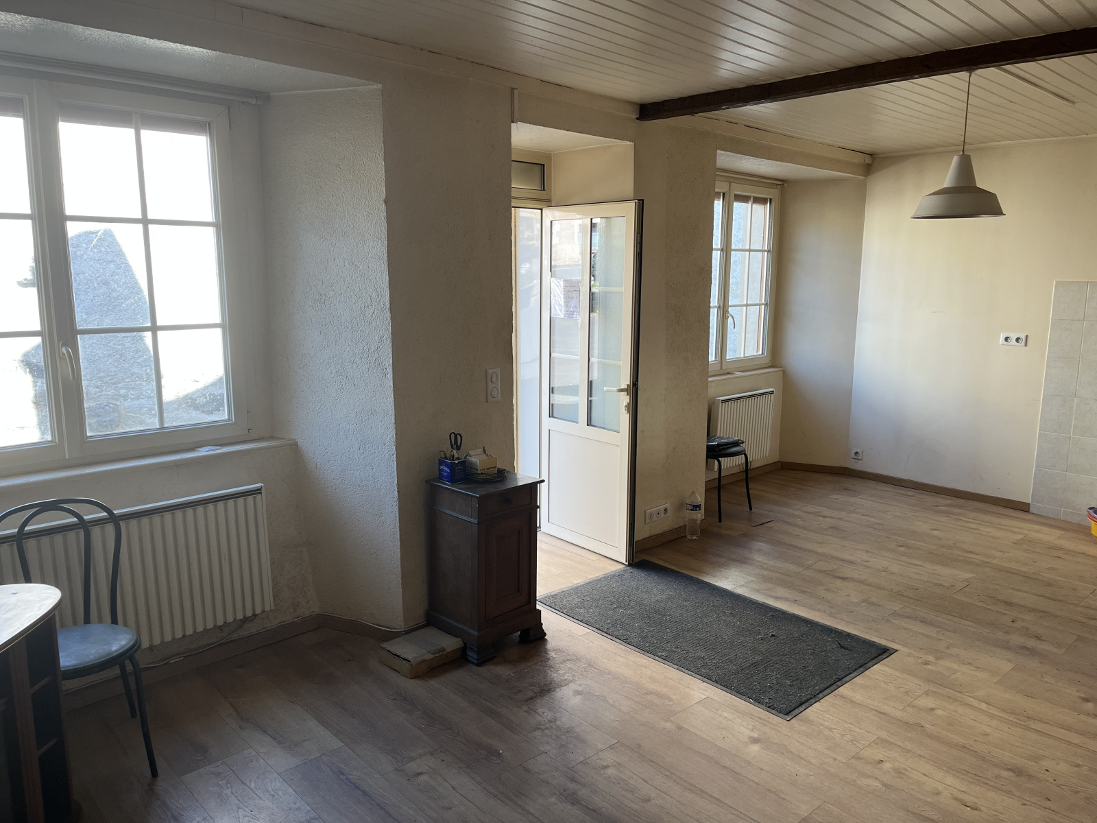 Maison sur une très jolie place dans un bourg agréable. Deux chambres, salle de bain et pièce de vie, possibilité de faire une troisième chambre au rez-de-chaussée. Un grand garage avec accès à l'arrière de la maison.