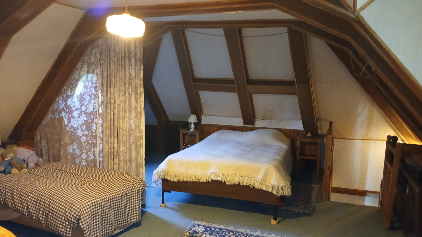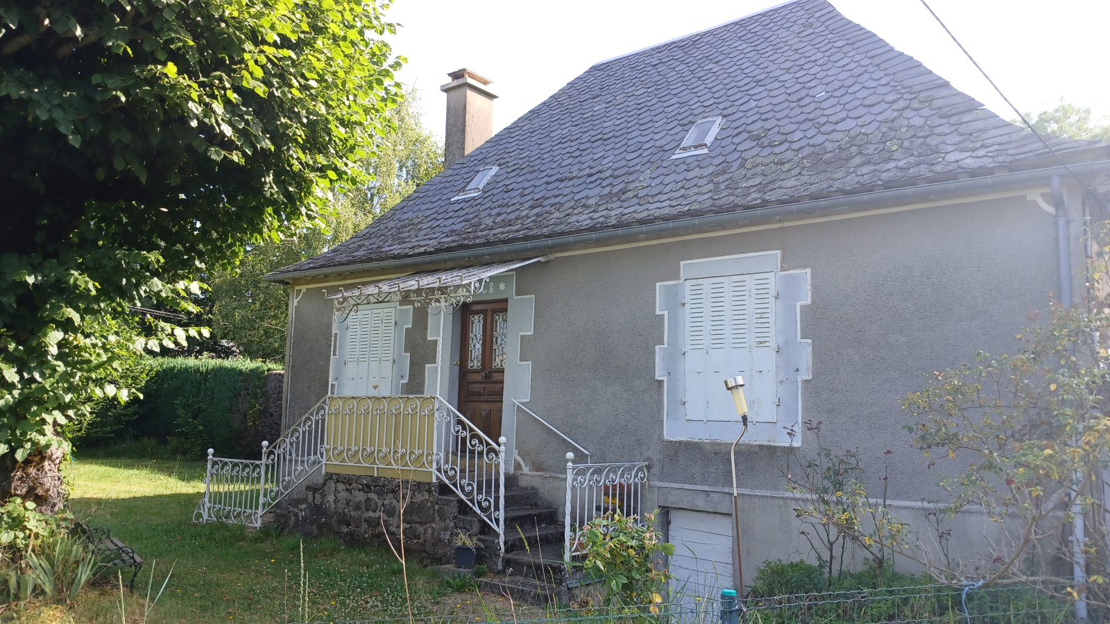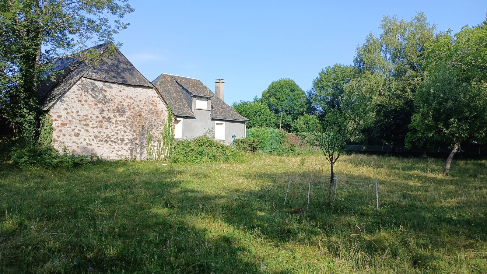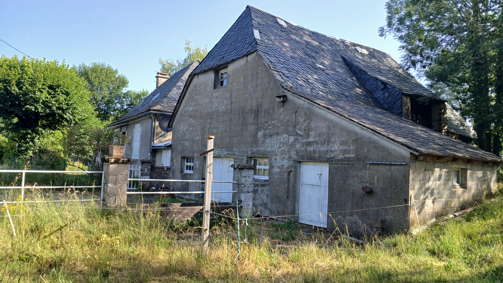 A 10 minutes de Mauriac, sur un jolie terrain arboré et clôturé de 3325m²,grange et maison typique composée d'une chambre, une salle d'eau, un salon séjour et un coin cuisine au rez-de-chaussée. A l'étage: une grande chambre.
