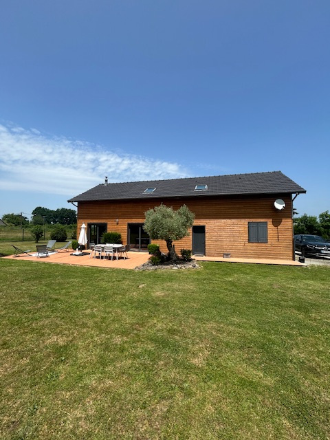 A 5 minutes de Mauriac, jolie maison en ossature bois sur un terrain de 1511m² avec un double garage. Maison climatisée avec 4 chambres à l'étage.