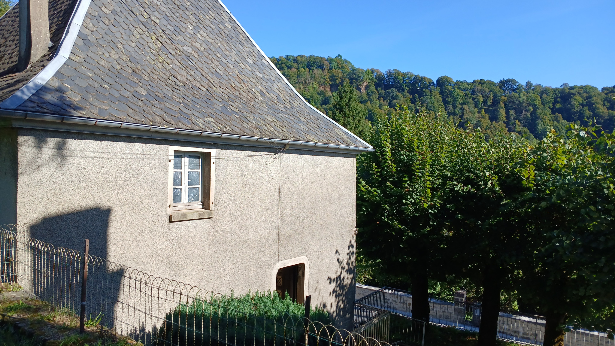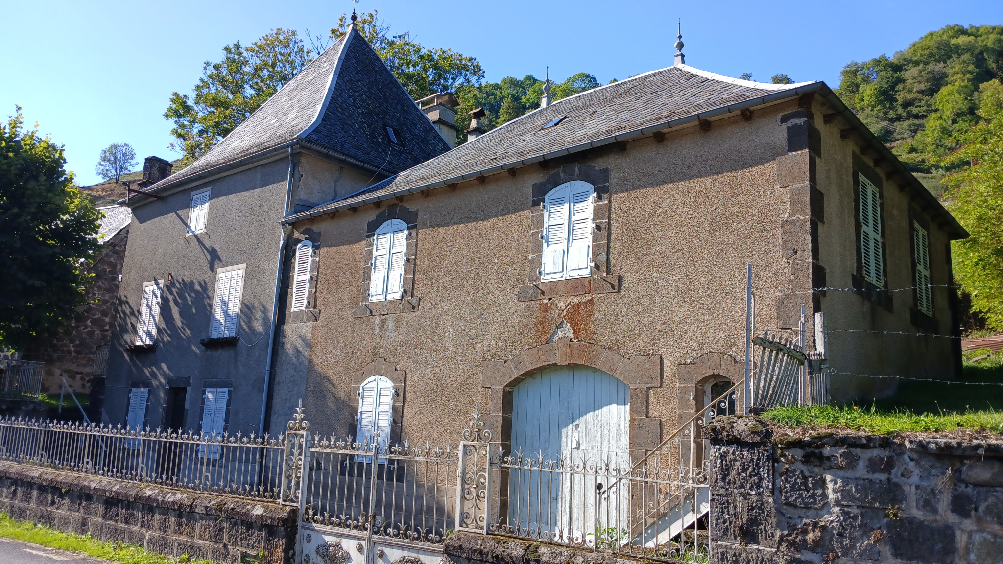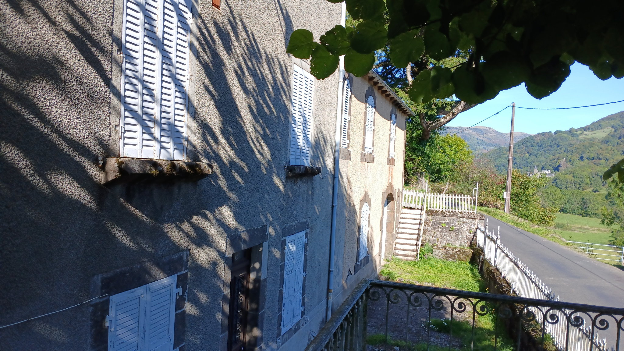 Dans la vallée de la Maronne, grande maison bourgeoise avec ses anciennes écuries,à rénover. En retrait d'une petite route départementale, un terrain de 690m² autours de la maison et un jardin de 990m² de l'autre côté de la route.