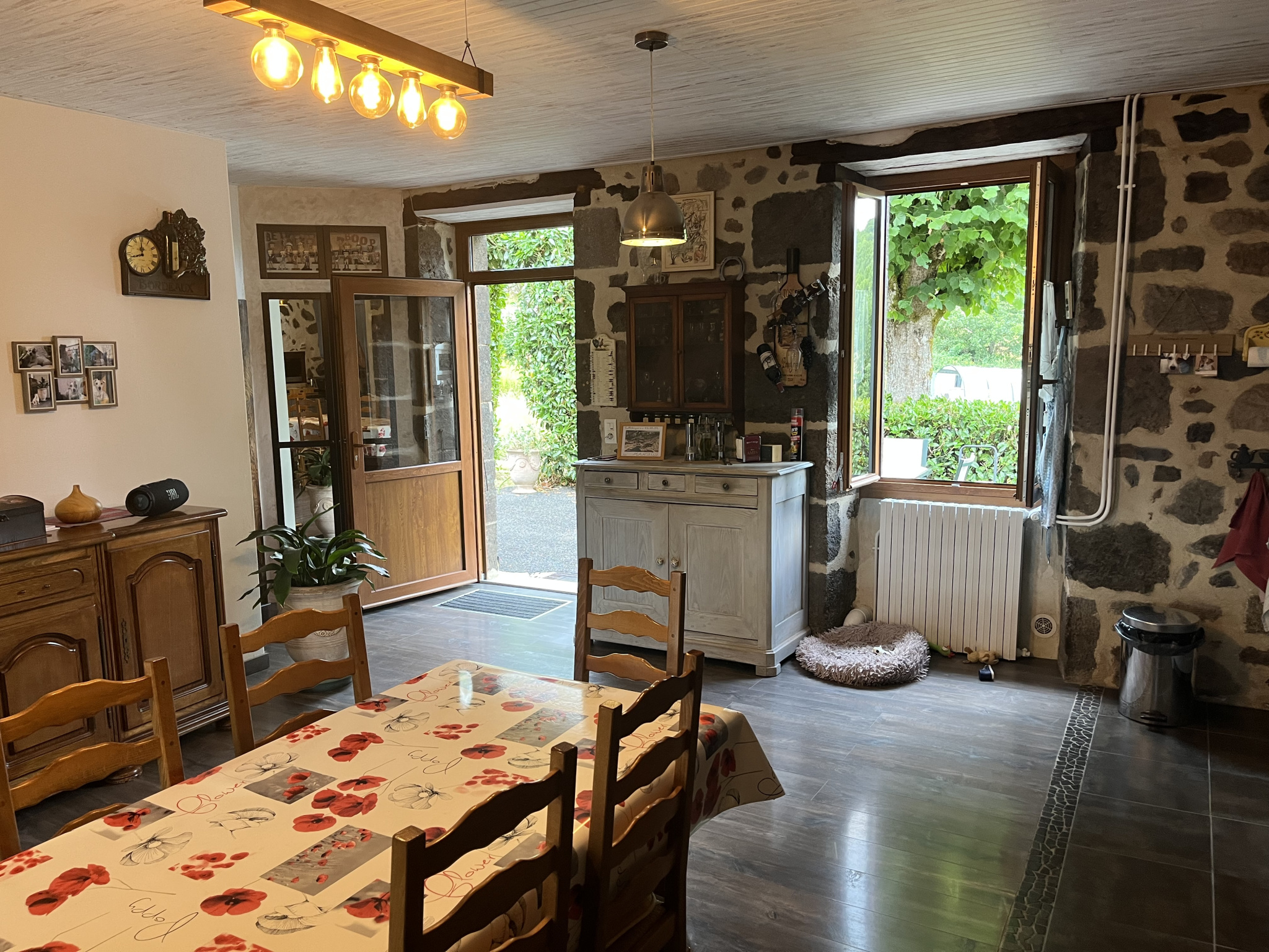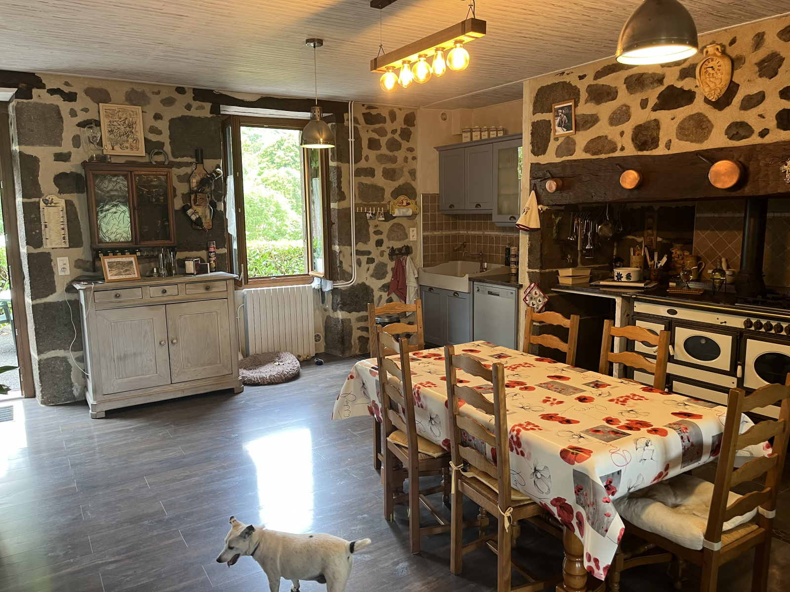Trés rare, dans le massif, vue exceptionnelle, pas de voisin, maison auvergnate trés bien rénovée de 134 m² avec 3 belles pièces de vie,3 chambres, une dépendance attenante à usage de buanderie et atelier de 100m² pouvant être aménagée en pièces supplémentaires, anciennes porcherie servant de rangement, maison et terrain alimentés par une source