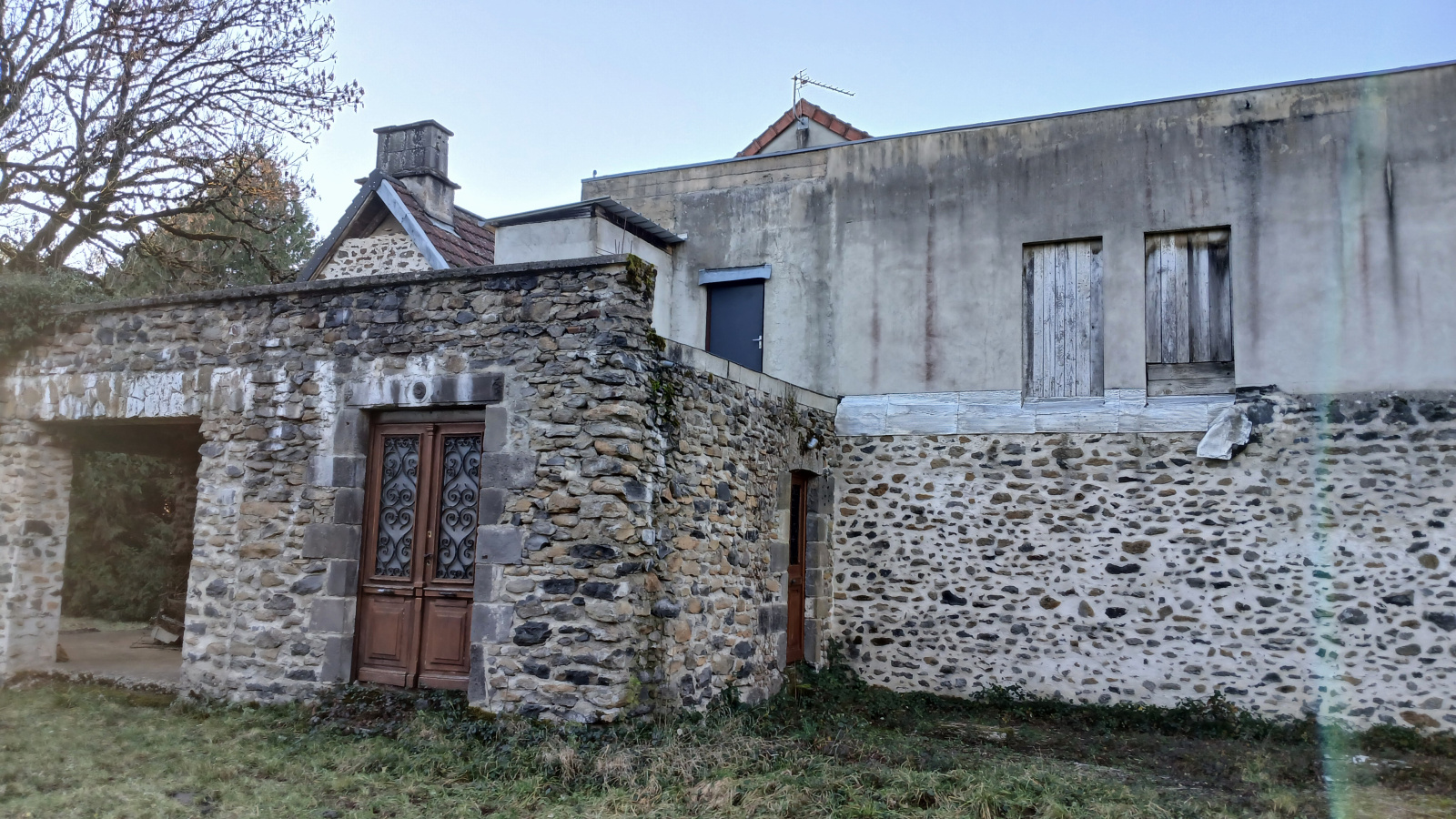 Proche de Mauriac, maison typique auvergnate (pièce de vie avec cantou et souillarde), extension en pierres de 300m² à finir d'aménager, terrain arboré de 8500m², grange étable non attenante, très beau potentiel pour cette grande batisse.