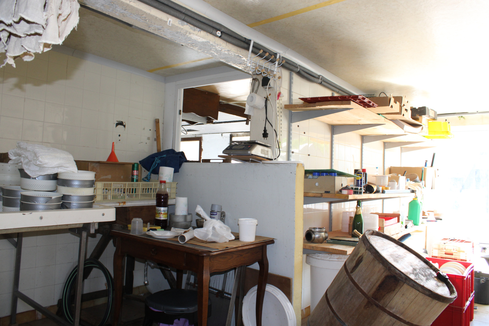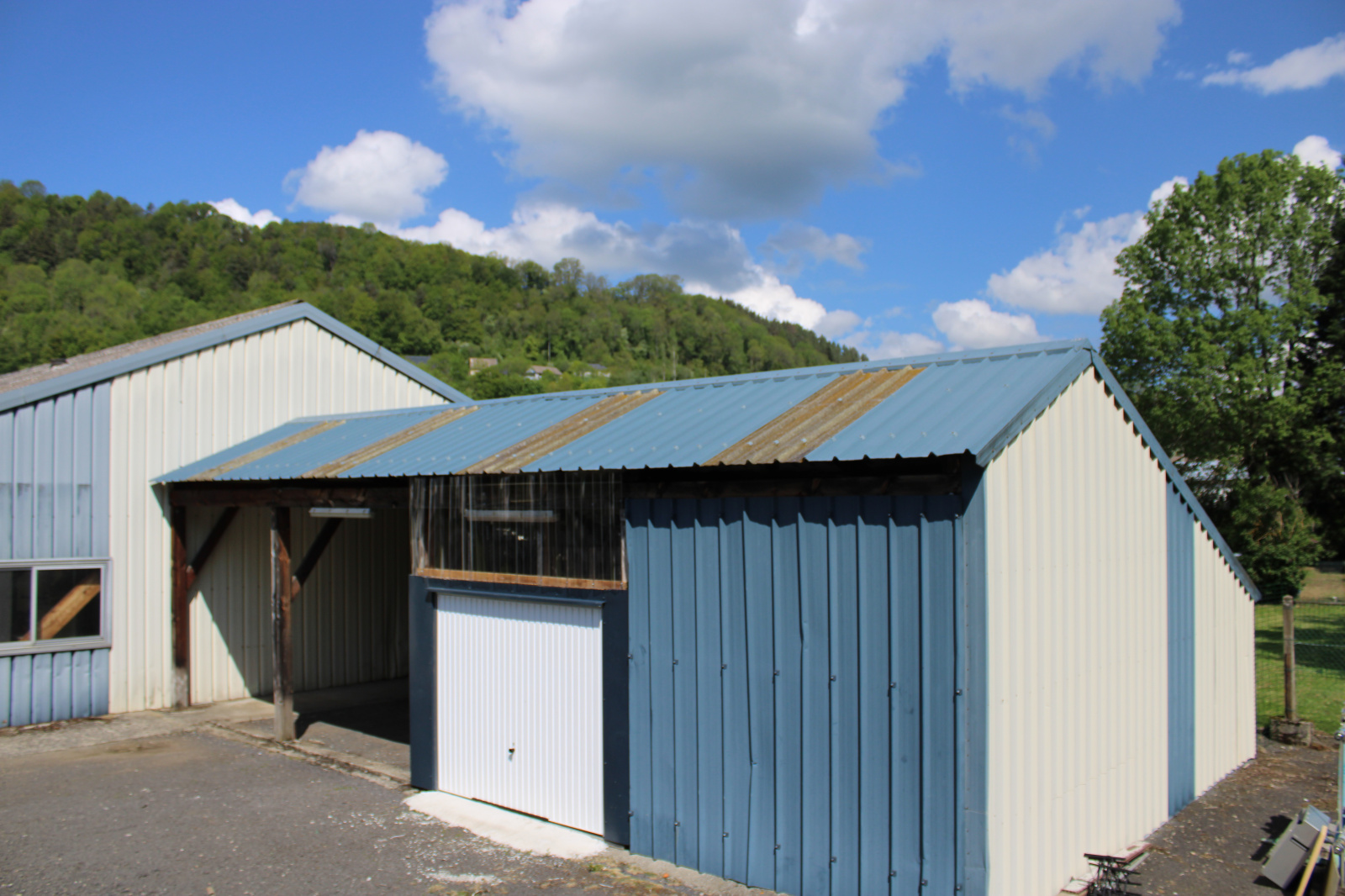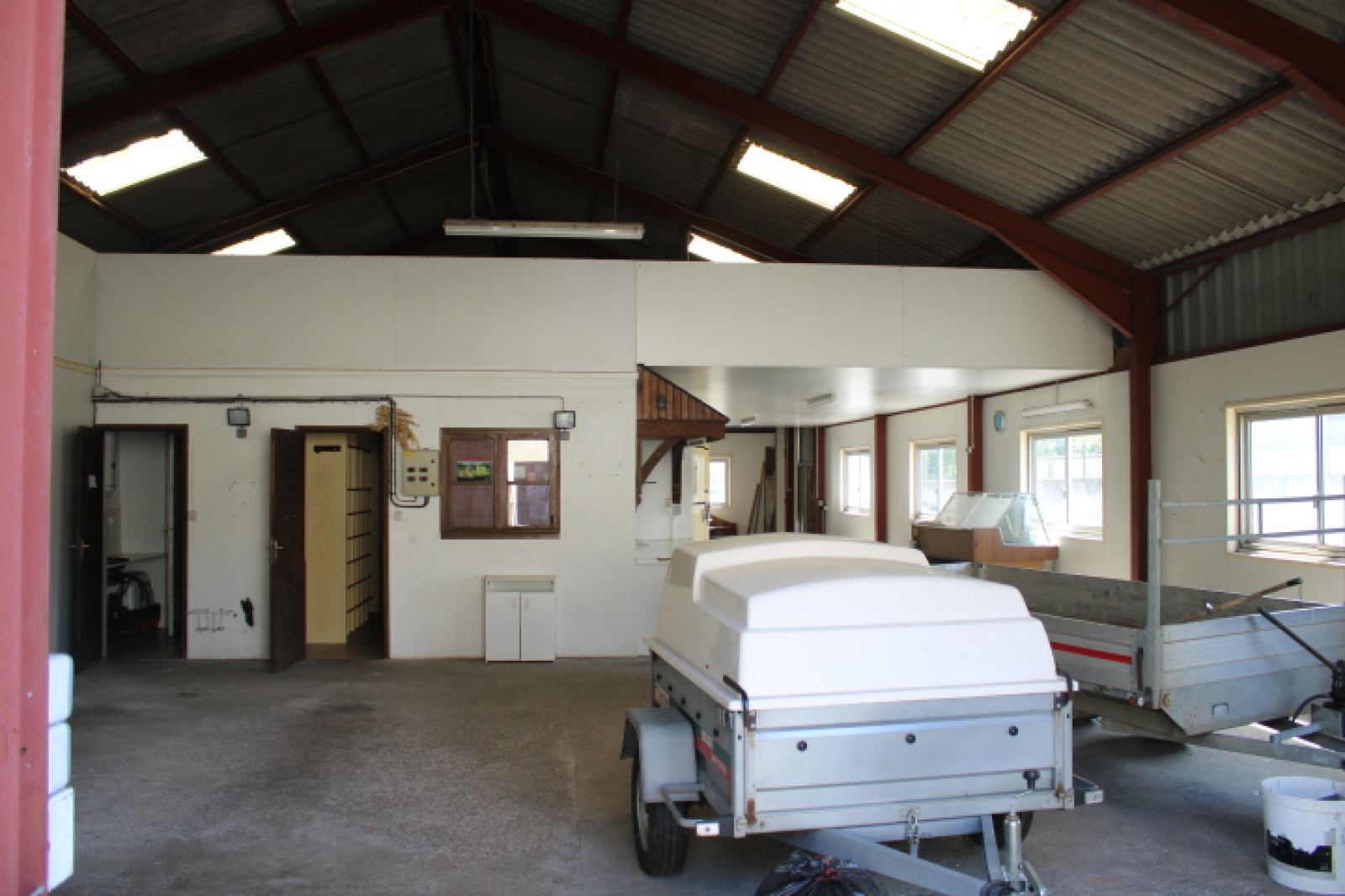 Indépendamment, un hangar avec garage,grand espace avec bureau, wc/douche, frigos.